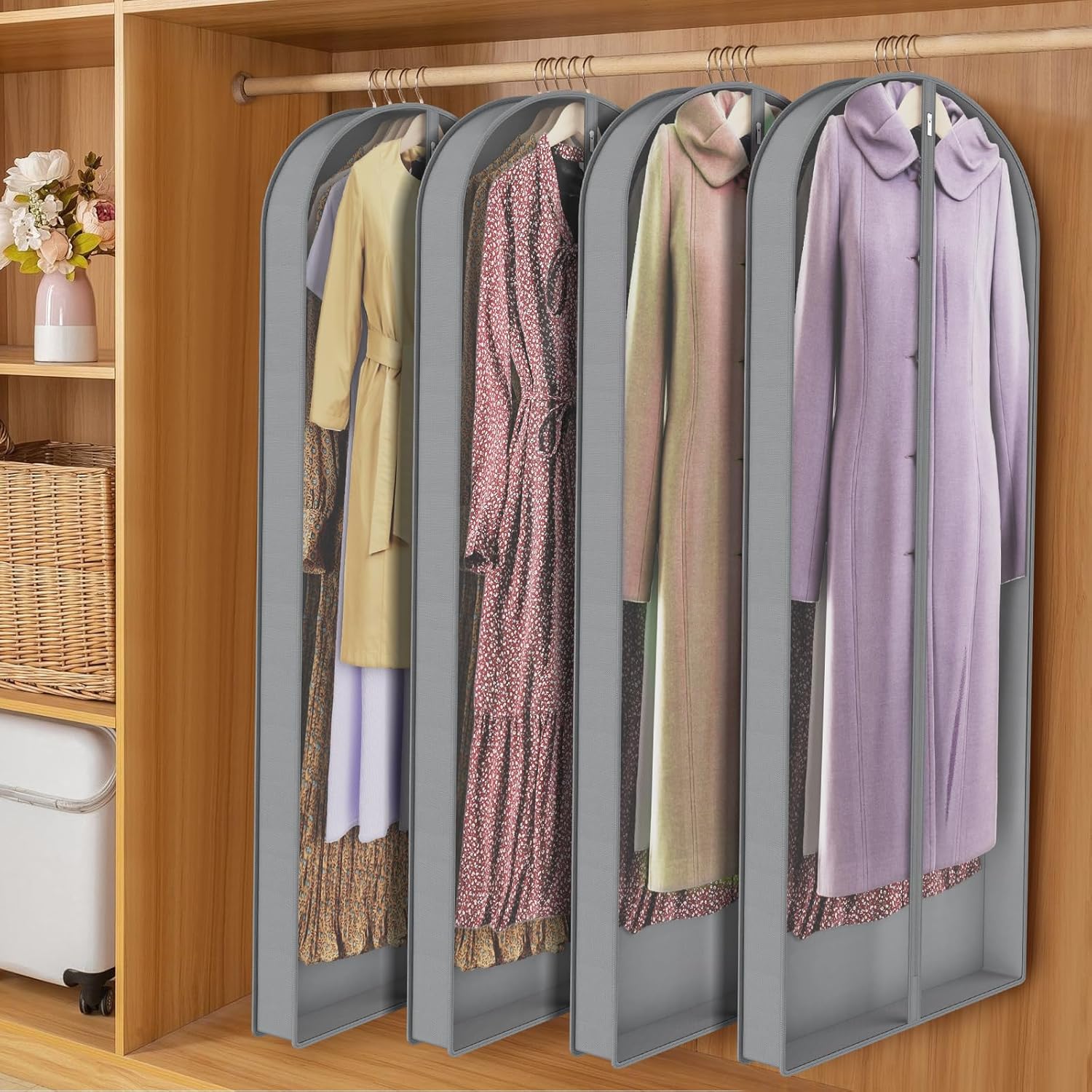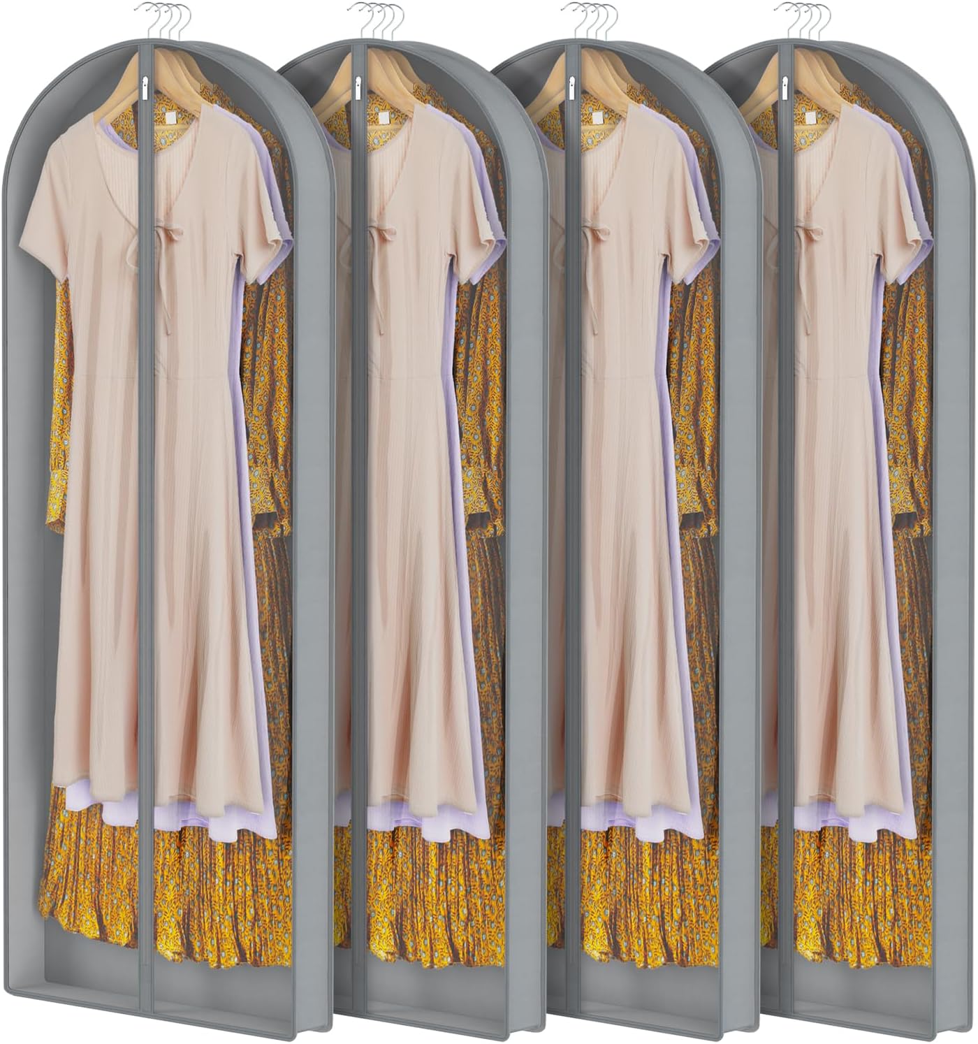 Zilink Luxury Breathable Fur Coat Storage Bags 60" Dress Bags for Gowns Long Mink Coat Garment Bag with 4" Gussted Wrinkle Free for Leather Jacket Fur Coats Puffy Dress Storage, Set of 4