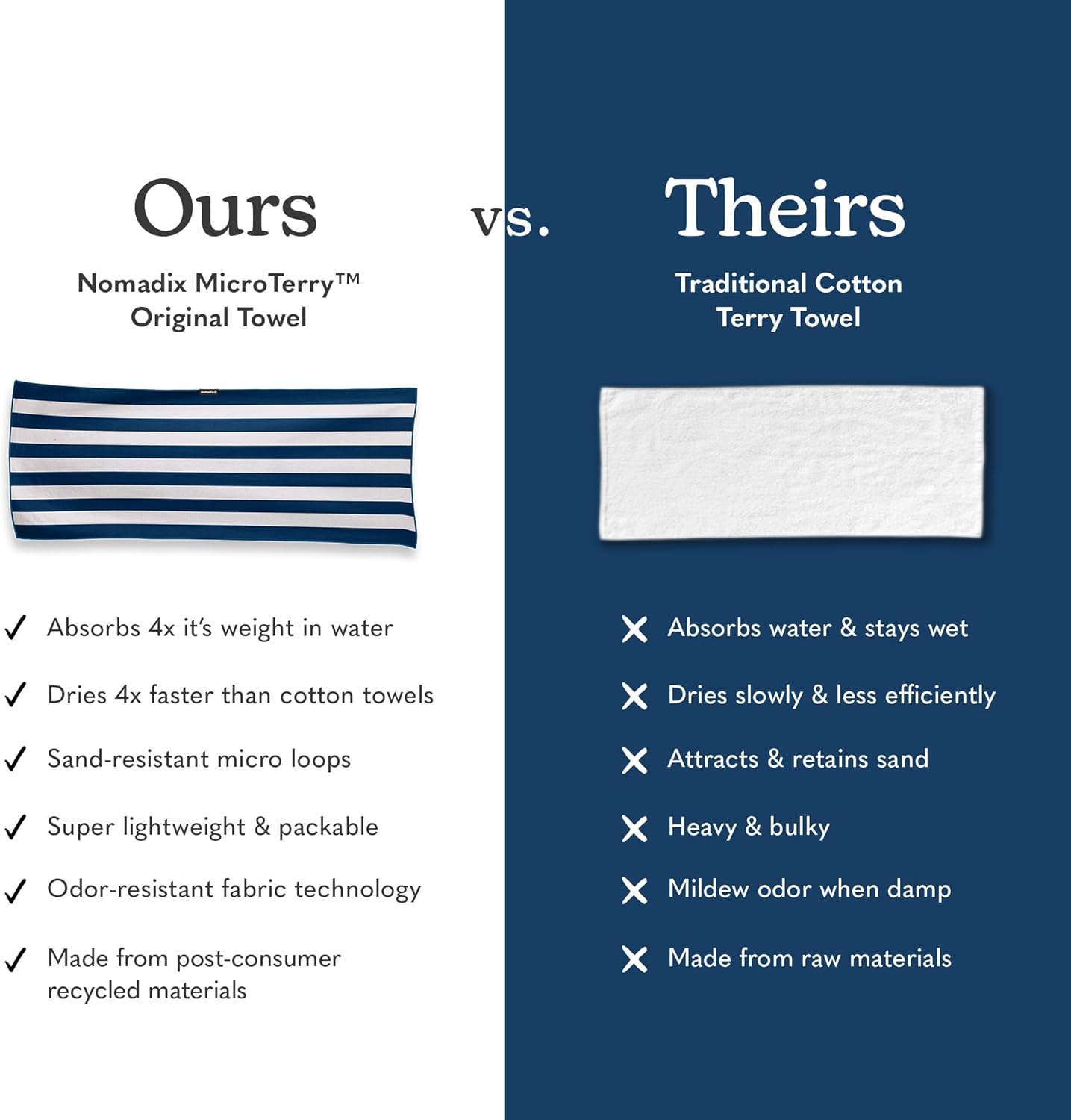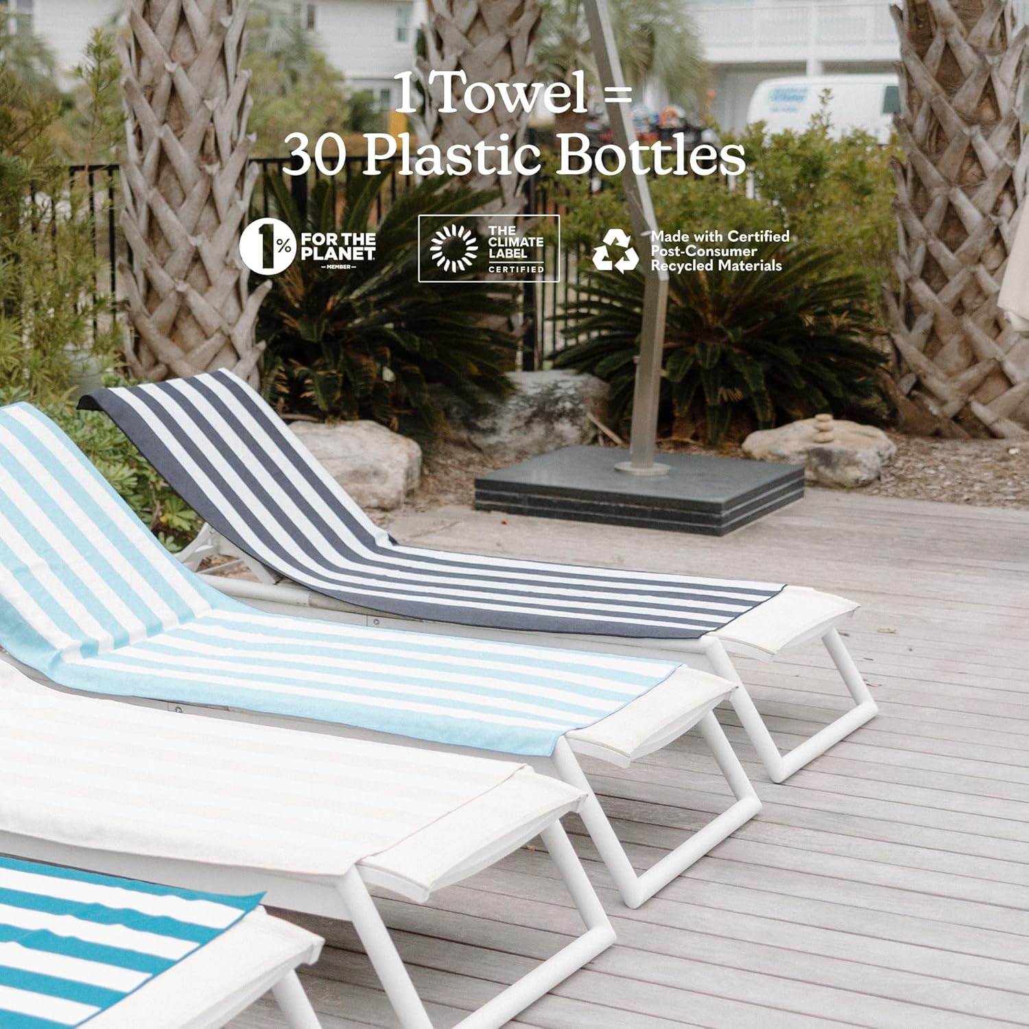 - Made With Post-Consumer Recycled Materials: We aren't using virgin plastic to make our products. We source already used plastics to build our towels.