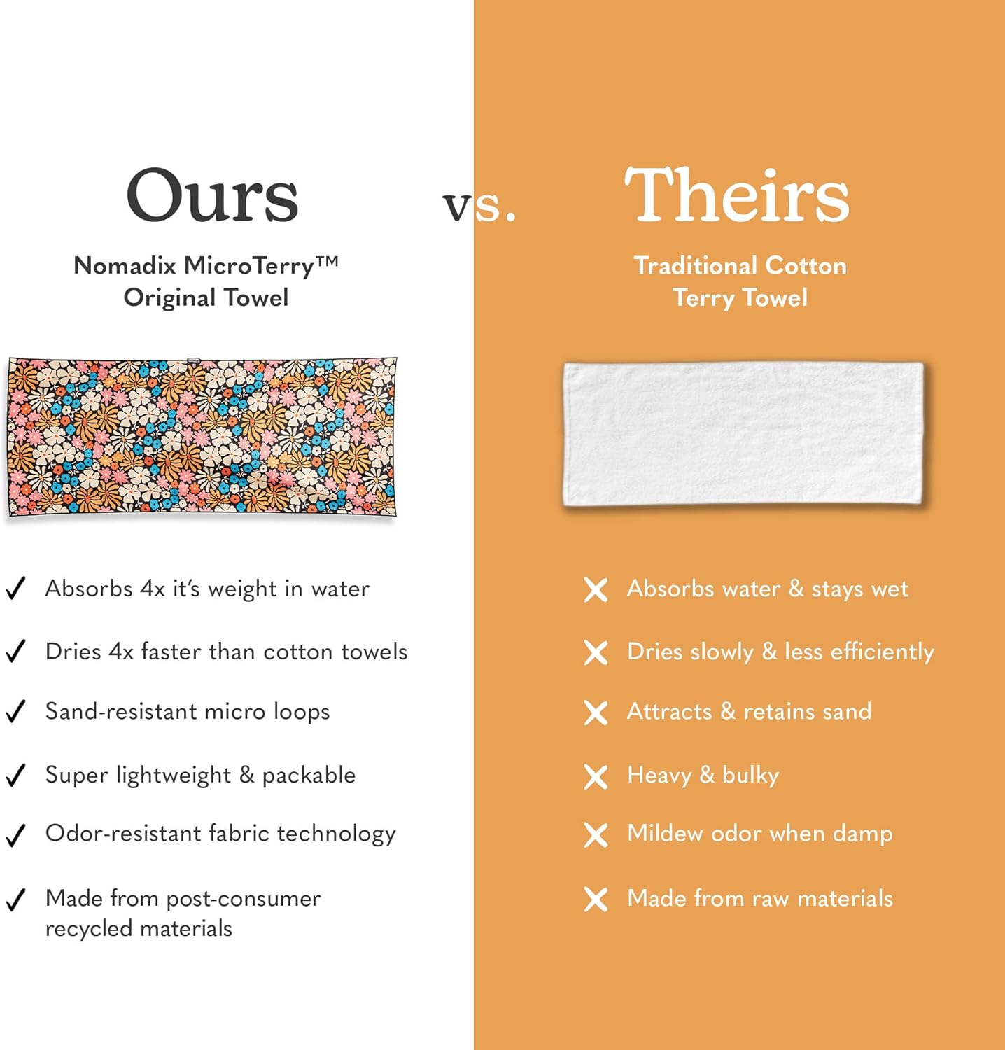 - Super Absorbent MicroTerry Fabric: Our MicroTerry Fiber is made with small loops, which means that it is super absorbent, absorbing 4x more than regular cotton towels.