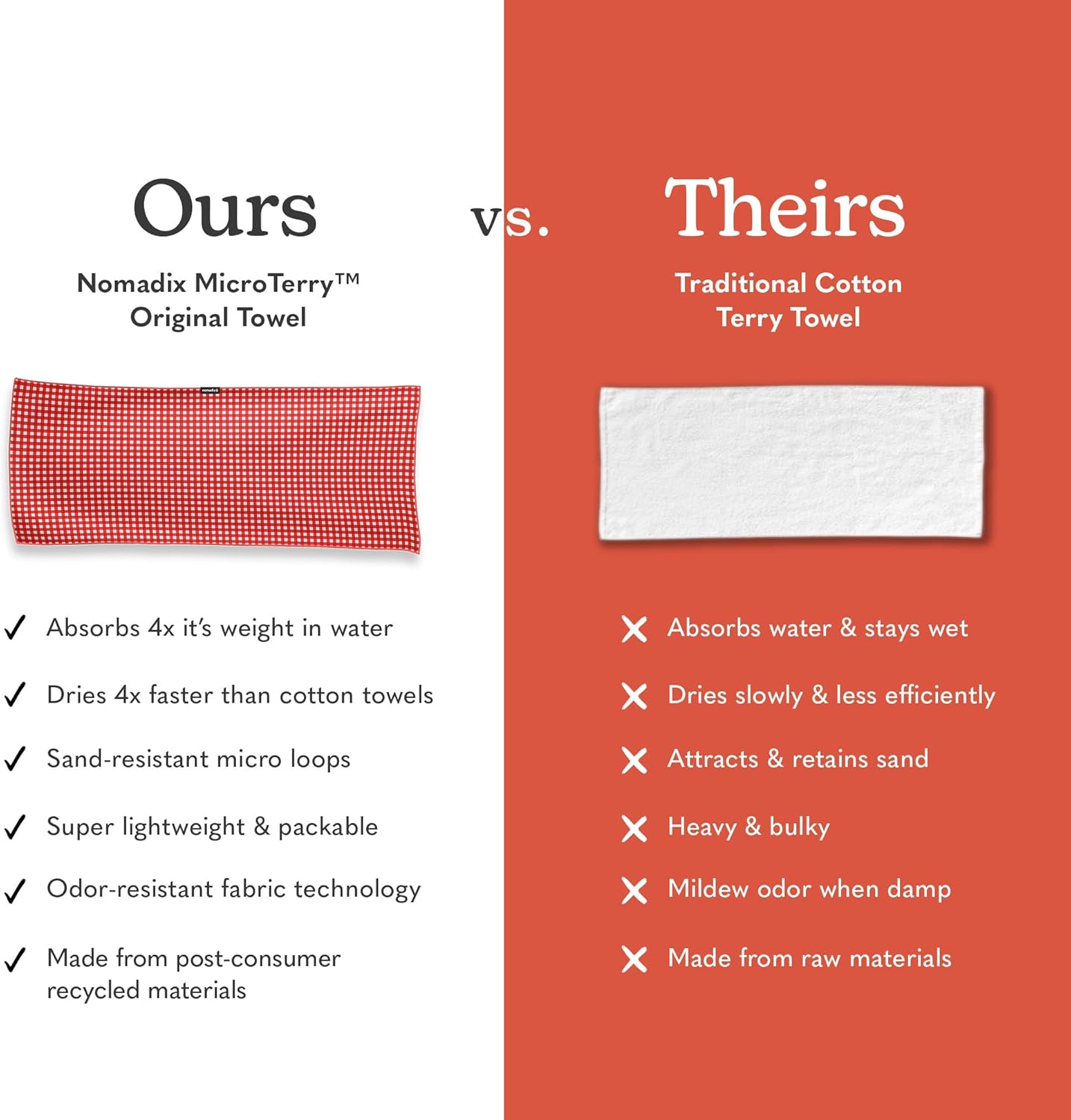 - Super Absorbent MicroTerry Fabric: Our MicroTerry Fiber is made with small loops, which means that it is super absorbent, absorbing 4x more than regular cotton towels.