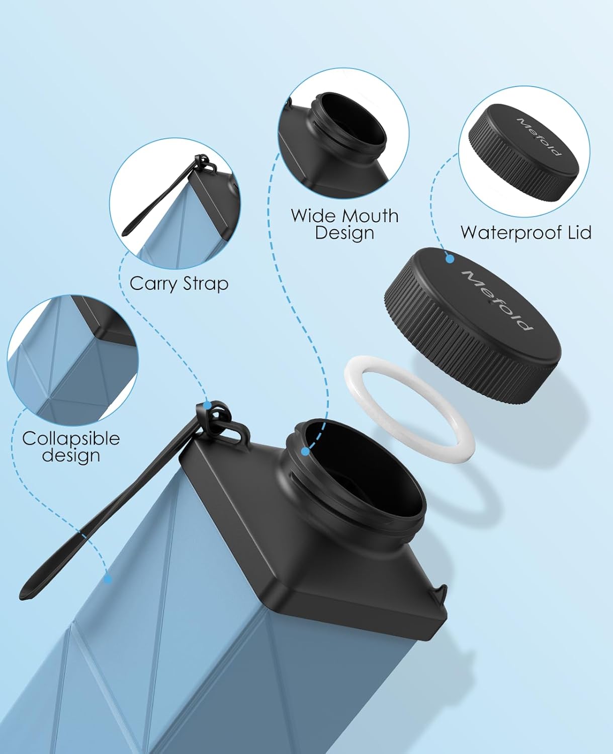 - Tiny Size, Big Hydration: This Collapsible water bottle with foldable design reduces the size by 60% and effortlessly saves space. Fits easily into pockets, backpacks, and suitcases to make your outings lighter. With a capacity of 720 ml, whether you are hiking, working out, traveling or commuting.