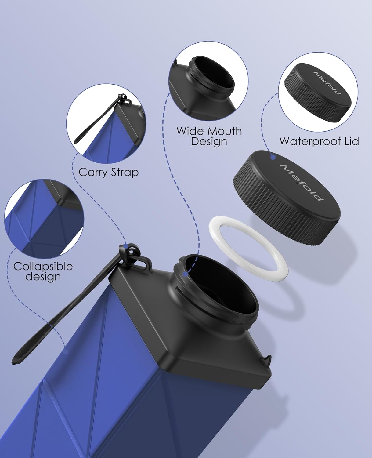 Collapsible Water Bottles, 2nd Generation Leakproof BPA-Free Travel Water Bottle 24.3oz(720ml),Lightweight Reusable Water bottle, Portable for Travel Cycling Gym Camping Sports,DarkBlue