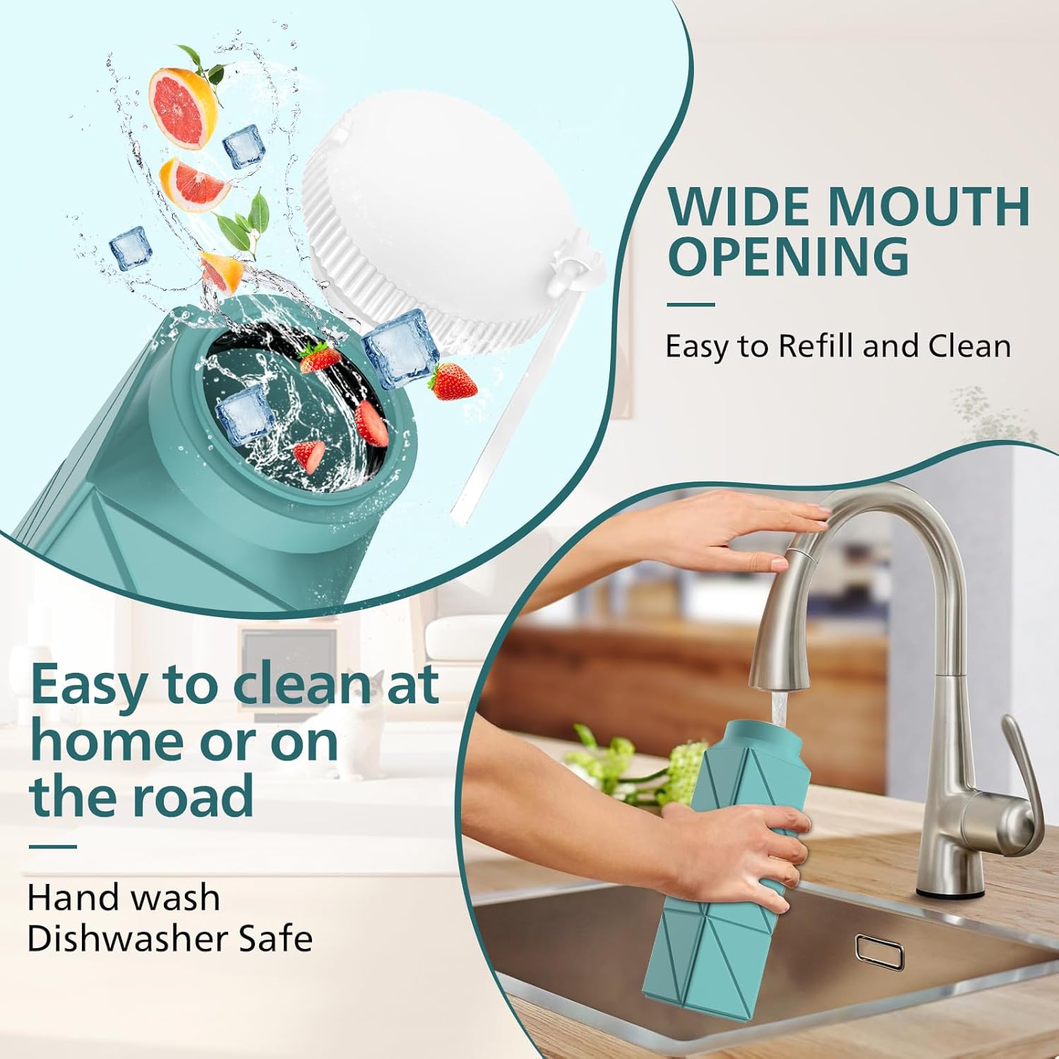 - Easy to Clean and Fill The bottle's components are fully removable for hassle-free cleaning, and it's dishwasher safe for added convenience. Its wide neck and removable spout make it easy to wash, fill, and drink from, and they also allow for adding accessories like ice and lemon.