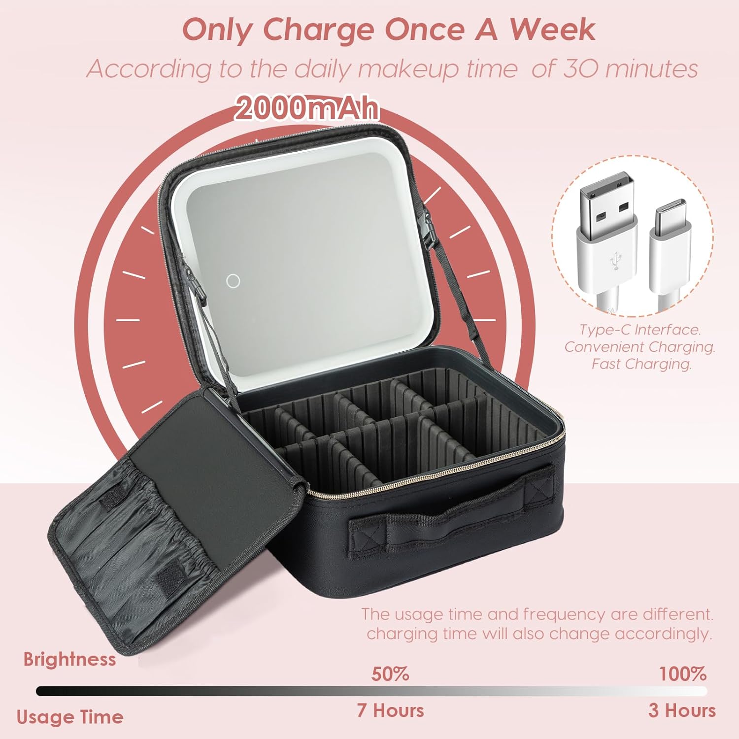 • 【Built‑In LED Lighted Mirror】Integrated mirror features three brightness levels of natural, non‑glare LED illumination, ensuring flawless makeup in any lighting condition.