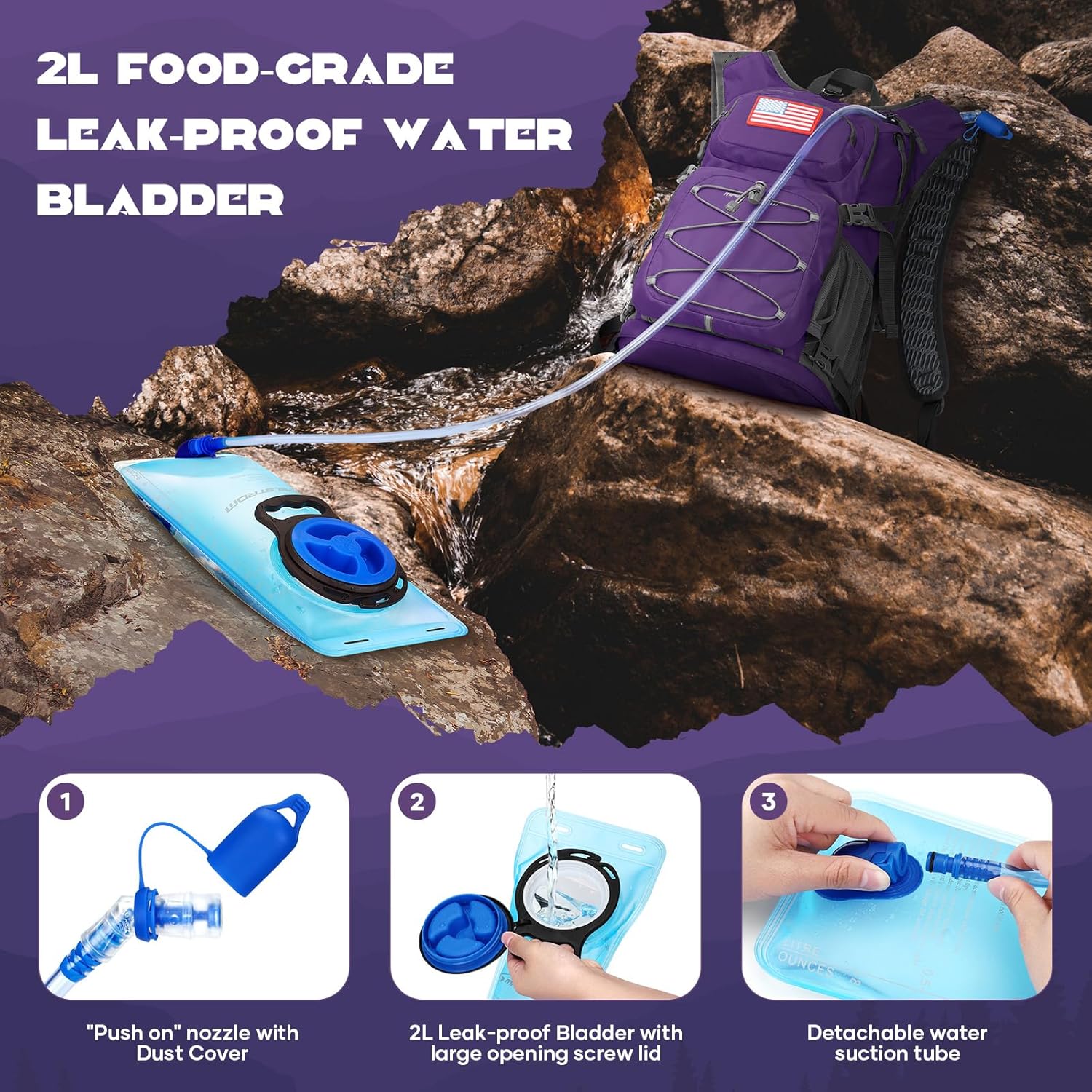 Maelstrom Hydration Hiking Backpack with 2L/3L Water Bladder, High Flow Bite Valve Camping Daypack Lightweight