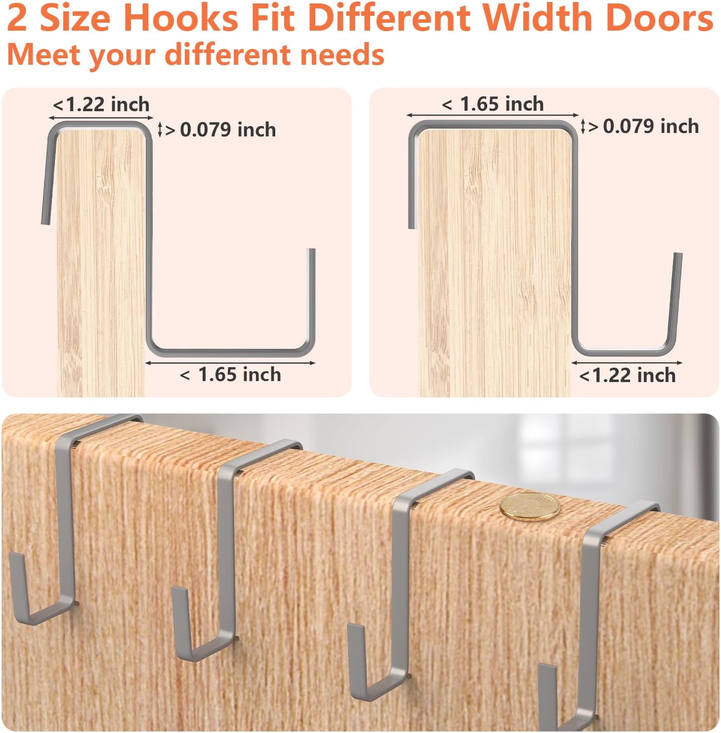 - No Installation, Just Hang & Go: No drilling or tools needed—Shoe rack for door hangs right on your door, perfect for protecting your walls. Lightweight and portable, over the door shoe rack is easy to take down or move around to fit your changing storage needs. Plus, it comes with 4 dual-size hooks, fitting doors up to 1.22 inches or 1.65 inches thick!