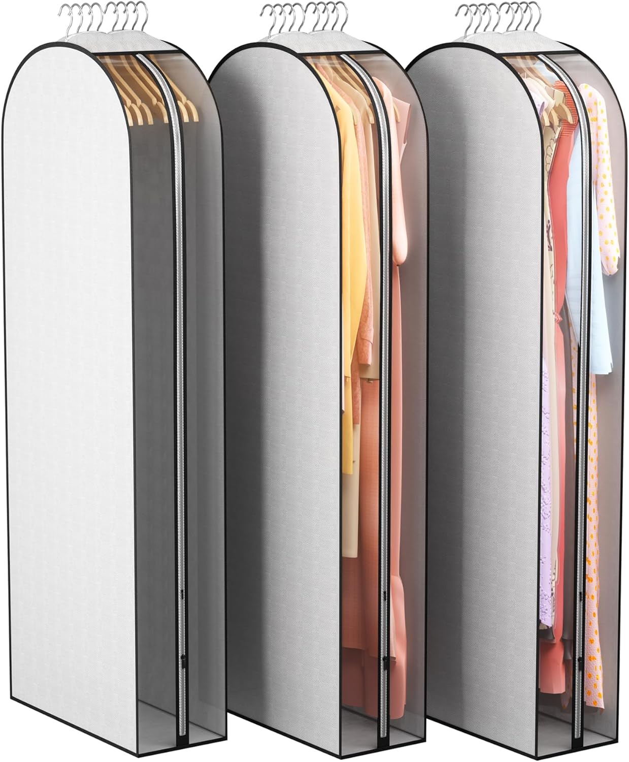- 10” Gusseted & 3 Pack: Each garment bag can hold 10 suit or 8 winter coats without wrinkles.50 inch length is perfect for storing long coats, furs,Jacket, holiday dresses and pants, etc