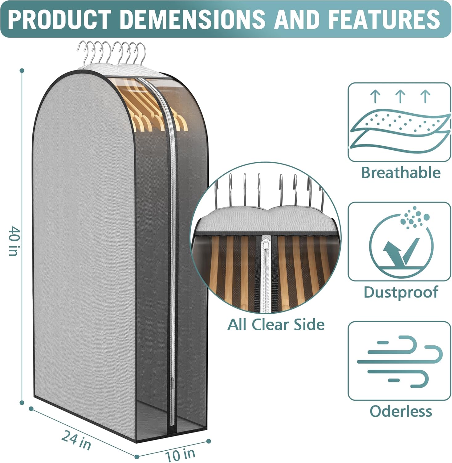 - Smooth Side Zipper: The smooth zipper is installed on the transparent side for easy access to clothes. You can get what you want without taking out all your clothes