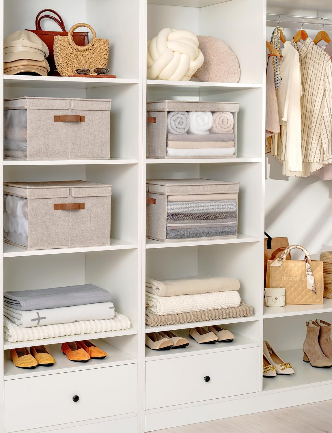 - High-Quality Fabric: Made with breathable PVC mesh and sturdy fabric, these closet storage bins are durable, lightweight, and odor-free for long-term organized storage.