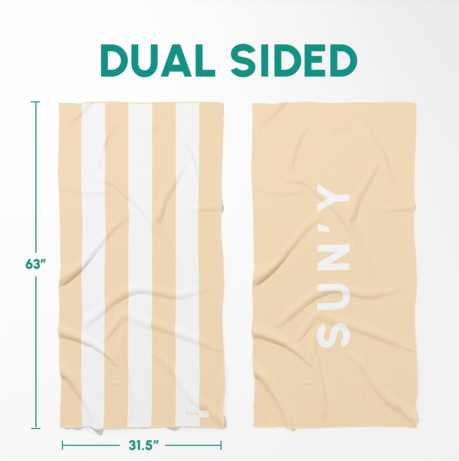 SUN'Y Waffle Microfiber Beach Towel – Sand Free, Quick Dry, Ultra Absorbent, Lightweight & Compact Travel Towel with Carry Bag - Large (63” x 31.5”), Natural Sand