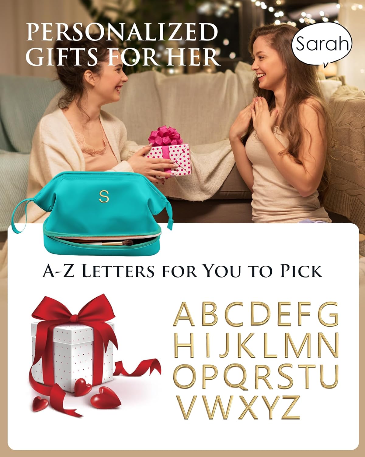 College Girl Gift Ideas, Birthday Gift for Her, Makeup Bag, Waterproof Double Layer Cosmetic Bag, Large Capacity PU Leather Makeup Bags Letter Travel Toiletry Bag, Initial Gifts for Coworkers
