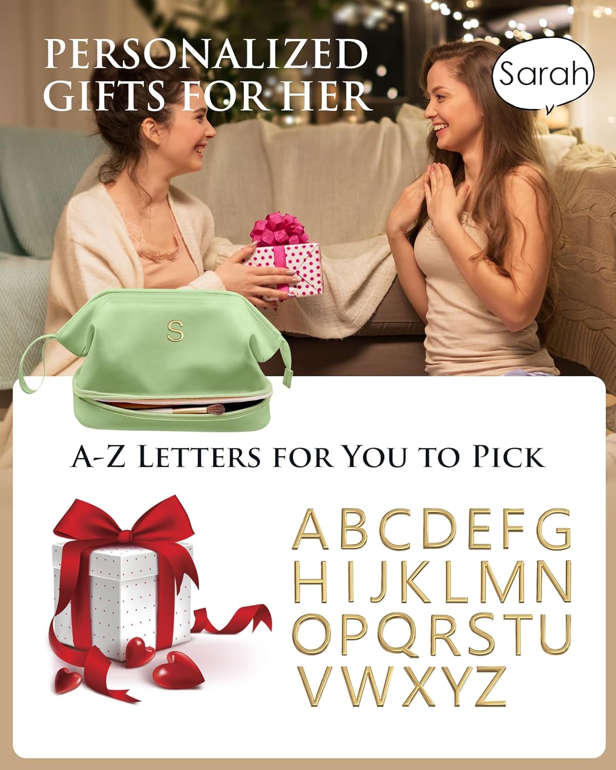 Gifts for Teen Girls 16-18, Initial Large Makeup Bag, Bride To Be Gifts, Double Layer Cosmetic Bag, Waterproof PU Travel Toiletry Bag for Bachelorette Party Women Wedding Bridal, Bride Gifts
