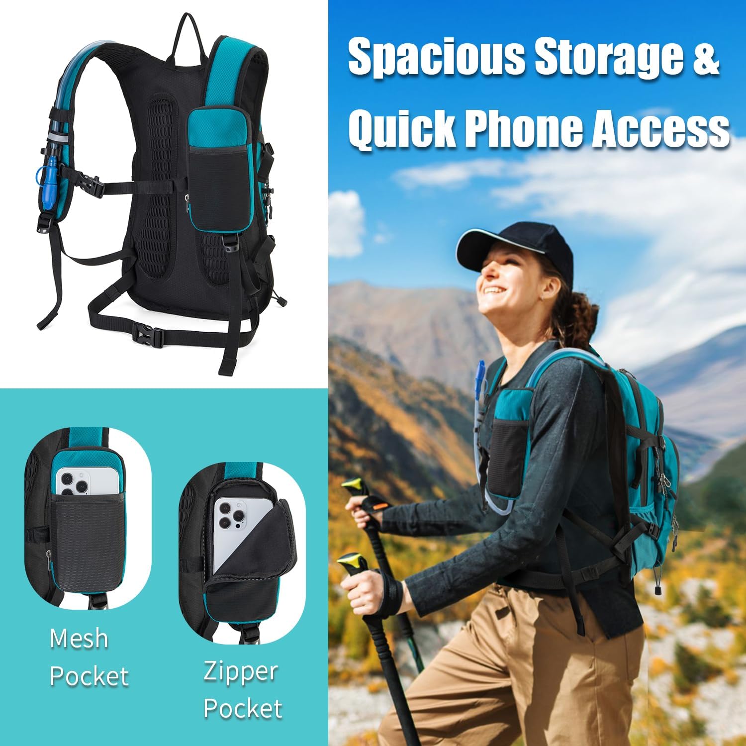 Hydration Backpack Pack with 2L Water Bladder 18L Hiking Backpack Women Men Lightweight Hydropack Insulated Daypack for Biking, Running, Festival