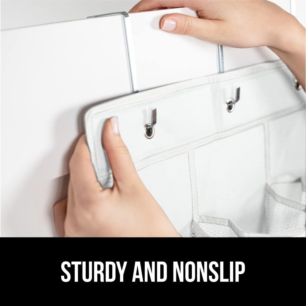 - SLIP RESISTANT DESIGN: organizer features four strong and sturdy hooks that firmly grip the top of doors and are designed to fit seamlessly over most doors