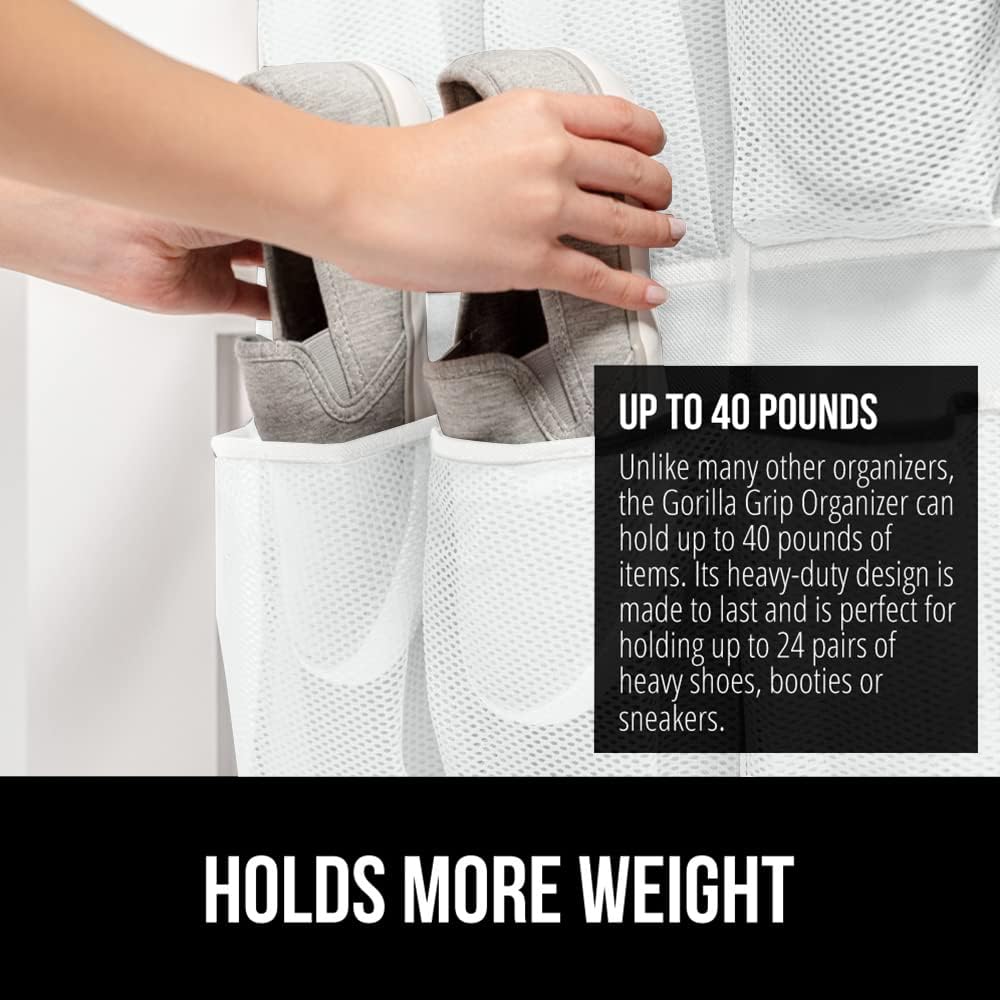 GORILLA GRIP Over the Door Shoe Organizer, 35 Large Breathable Mesh Pockets, Space Saving Hanging Storage Holder, 5 Hook Closet Rack Hanger, Hangs on Closets for Shoes, Accessories 68.5H x 24.5W White