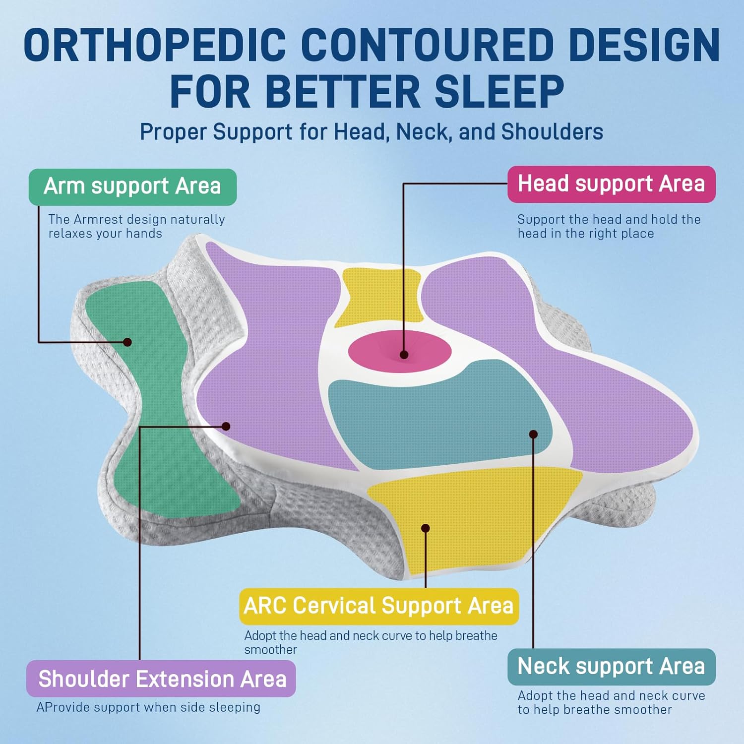 - Ergonomic Cervical Design for Natural Alignment Developed with orthopedic precision, this cervical neck pillow supports your neck and spine to relieve neck and shoulder pain, promoting better posture and restful sleep every night
