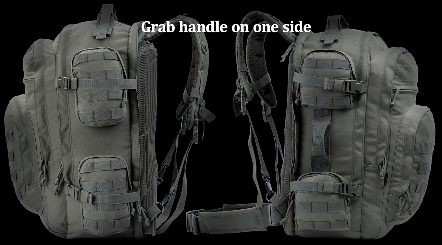 Large Tactical Backpack Bag with Stowable Shoulder Straps for Hiking, Camping, Traveling, Bug-Out 58L