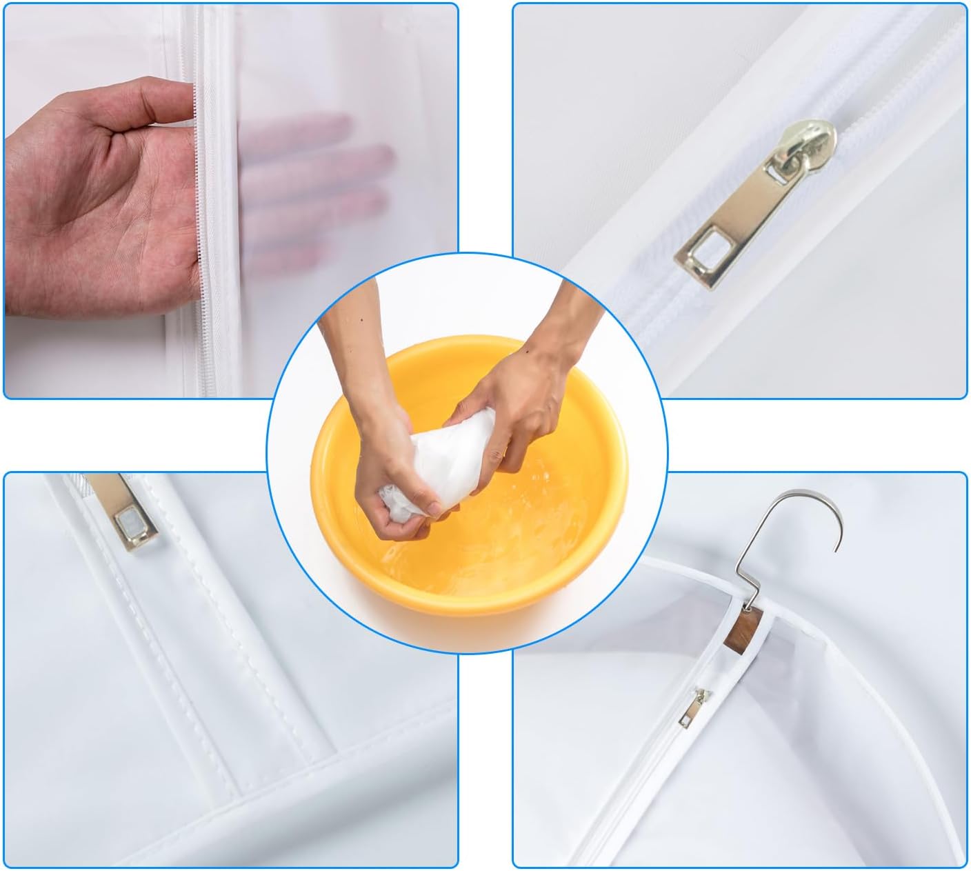 - Convenient Full Zip and Safety Clip: Featuring a full zip and safety clip, these plastic garment bags for hanging clothes ensure that your garments remain securely enclosed.