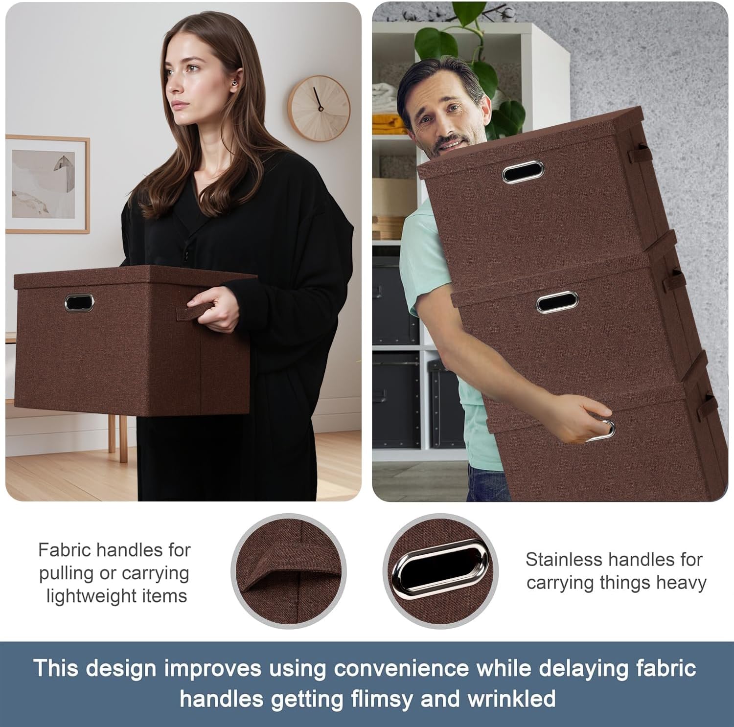 - ā [Constant Use] Covered by thick textured cloth, our large lidded storage bins prevent daily wears and tears. They can keep dust and bugs out also, avoiding dirt and musty smell. You can use these decorative storage boxes with lids everyday or for long term storage.