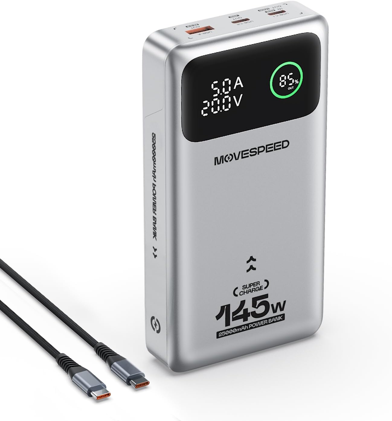 MOVE SPEED 145W Laptop Power Bank, PD 3.1 25,000mAh Fast Charging Portable Charger with 240W Type C Cable, USB C 3-Port with Digital Display Travel Outdoor Charger for iPhone, Dell, MacBook, Galaxy
