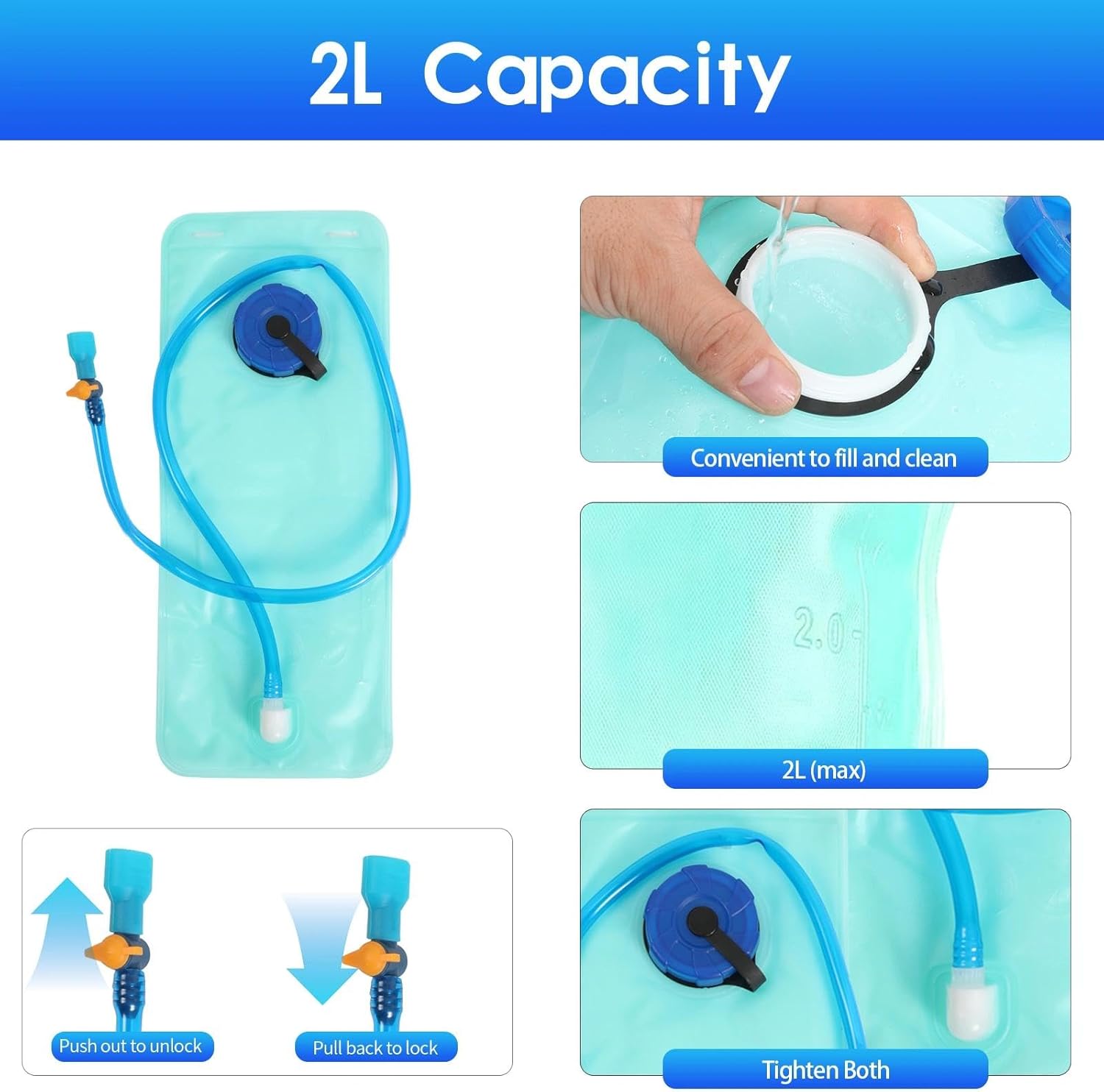 - Leakproof Water Bladder: This hiking backpack comes with a 2L leakproof water bladder, ensuring you can maintain proper hydration while on the go. It's designed to be effortless to fill and clean, making it highly convenient for your outdoor adventures