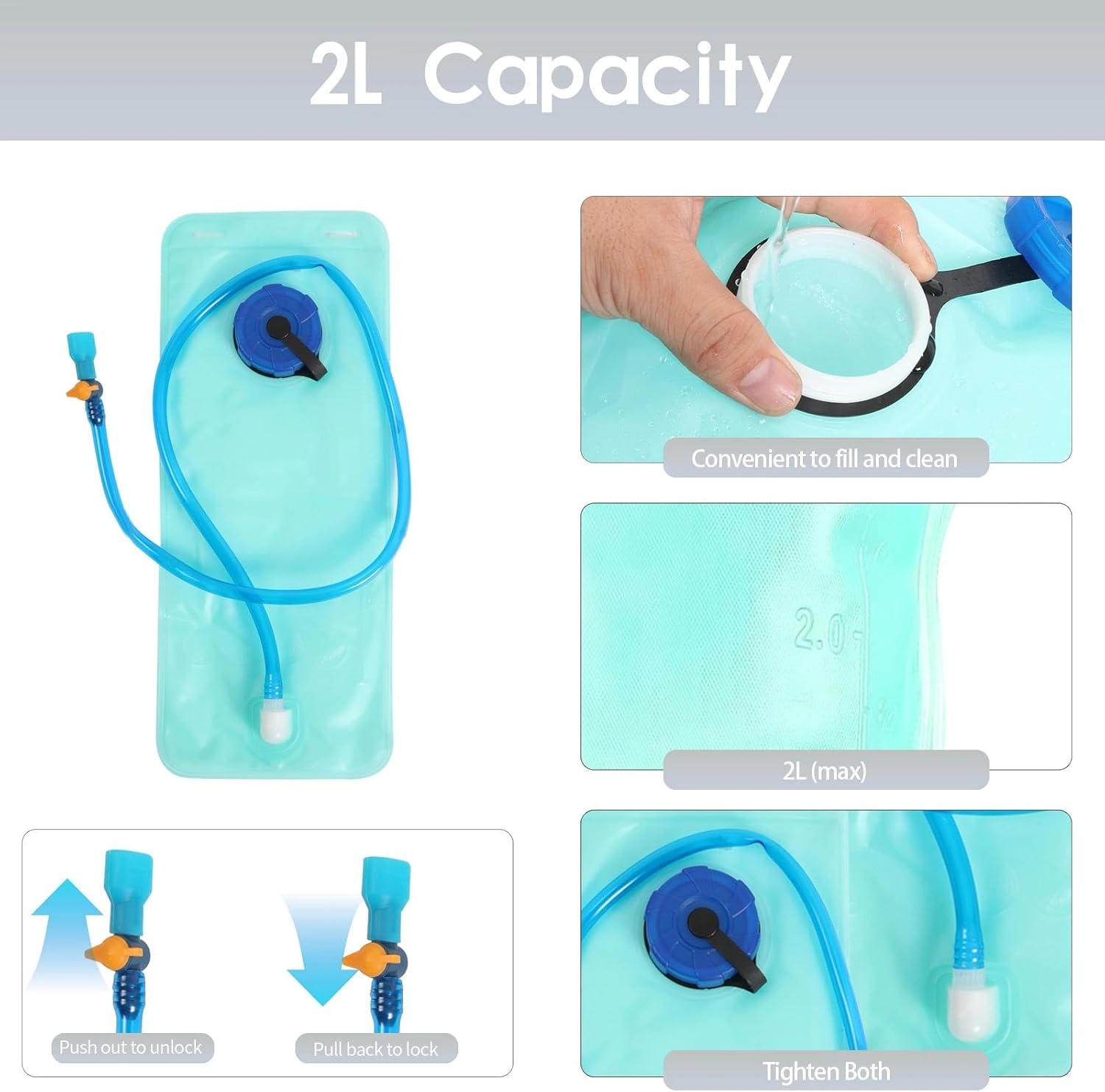 - Leakproof Water Bladder: This hiking backpack comes with a 2L leakproof water bladder, ensuring you can maintain proper hydration while on the go. It's designed to be effortless to fill and clean, making it highly convenient for your outdoor adventures