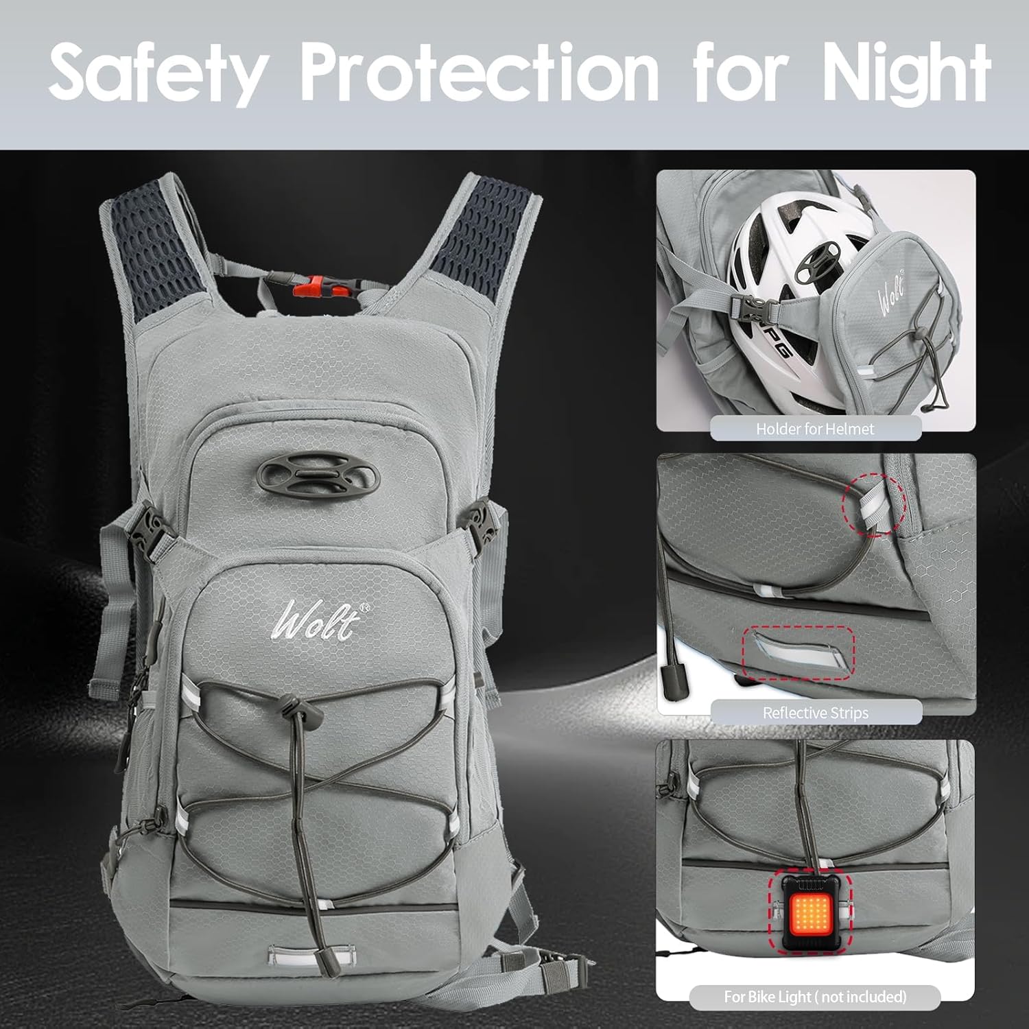 - Water-resistant Material and Waterproof Cover: The Wolt hydration backpack is crafted from durable, water-resistant material for long-term use. It also features a waterproof cover to handle any weather and keep your belongings dry and protected from wet conditions