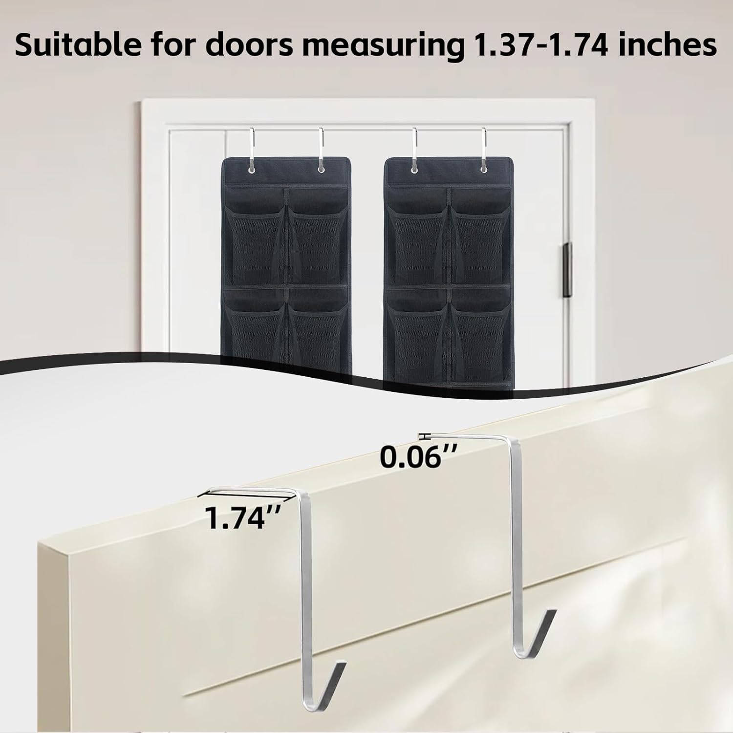 - ADJUSTABLE OVER-DOOR HOOKS FOR SECURE FIT: Heavy-duty metal hooks attach to doors (1.37"-1.74" thick) or closet rods. Durable non-woven fabric withstands frequent use without tearing