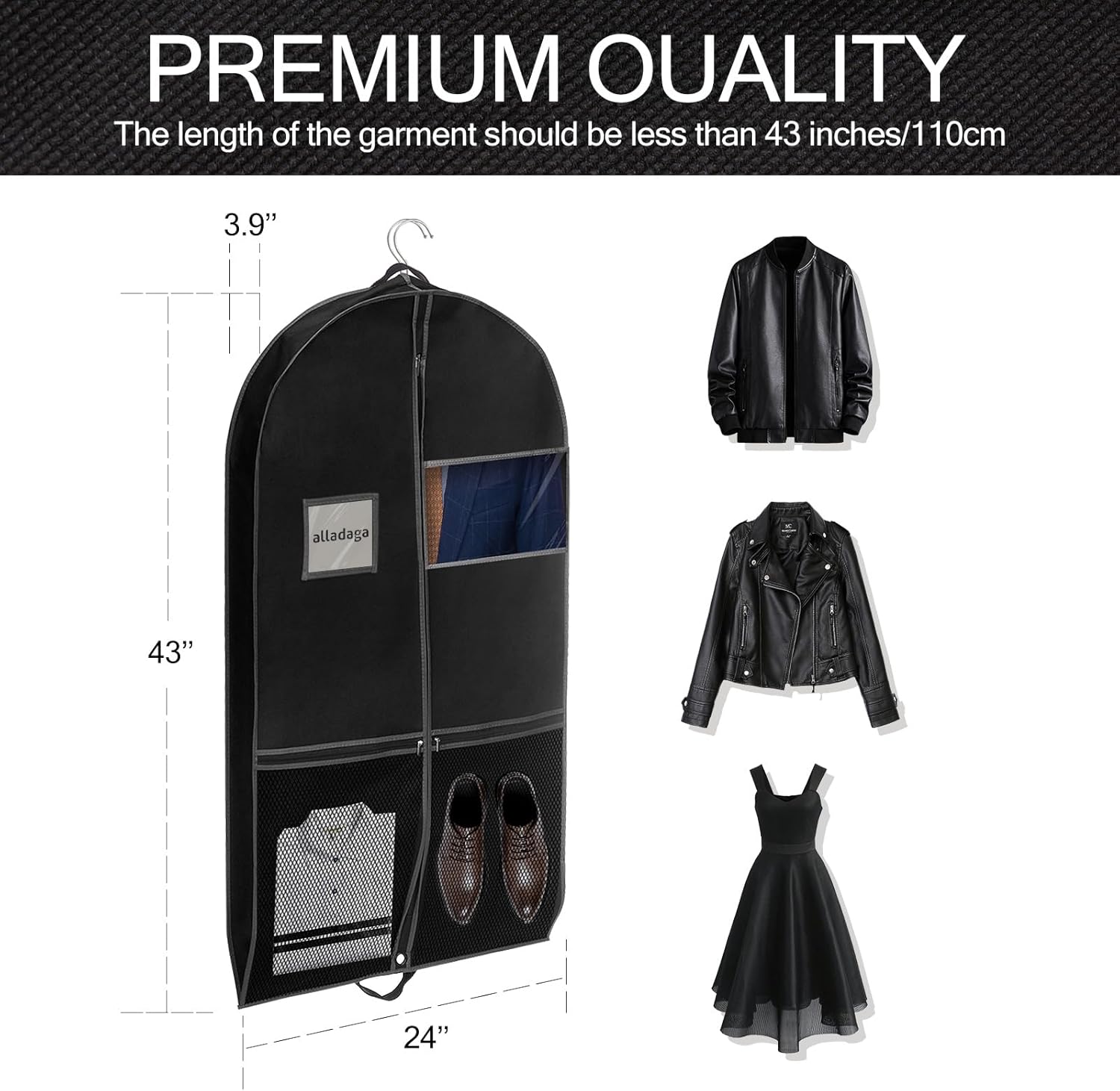 - Premium Non-Woven Fabric: This 43" garment bag is crafted from high-quality, lightweight, and durable non-woven fabric. Perfect for travel and storage, it offers excellent breathability to keep your suits, blazers, dresses, and coats fresh, dry, and wrinkle-free