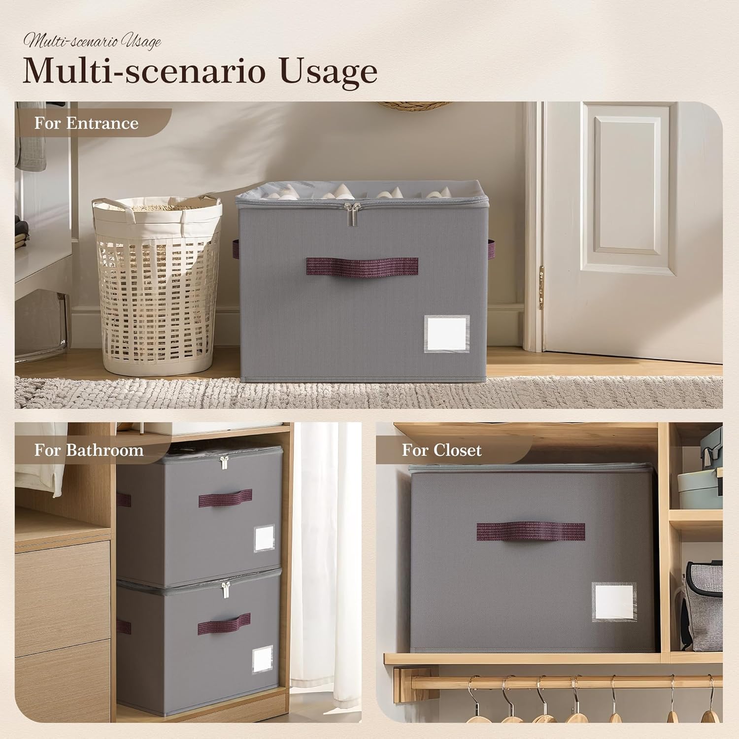 - Durable Construction: Our shoe organizer for closet features a sturdy zipper, three woven handles, and high-quality Oxford fabric to ensure long term use without tearing. Reinforced with two hard cardboard instead of fragile plastic, it maintains its shape and prevents deformation over time