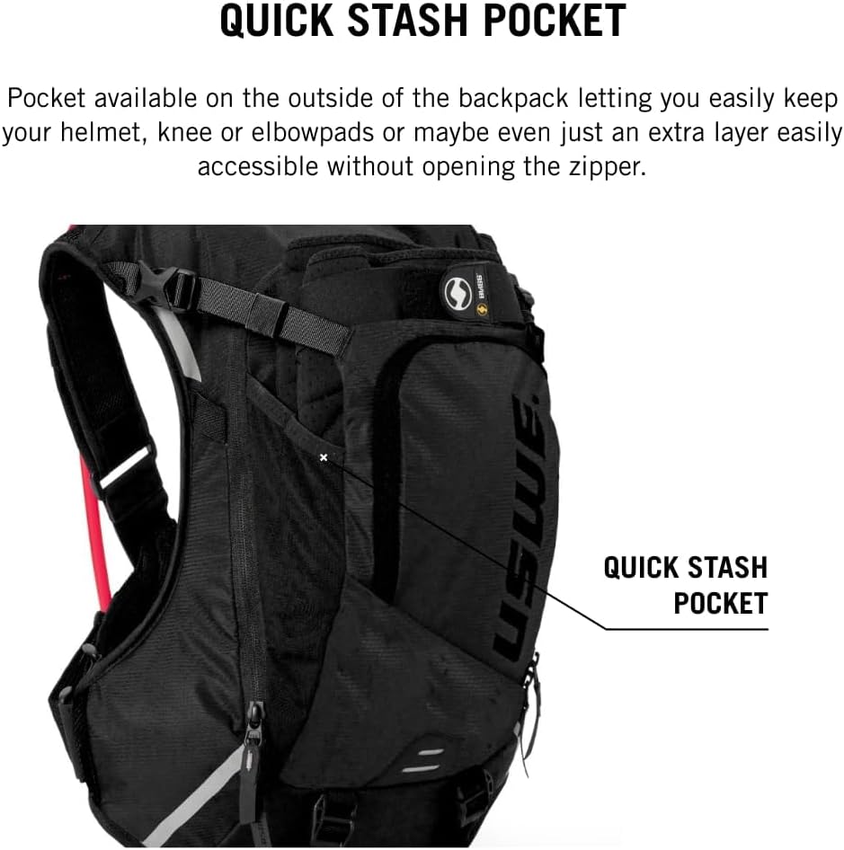 - QUICK STASH POCKET: An open exterior pouch provides easy access to an extra layer, helmet, or protective gear without needing to open the main compartments.