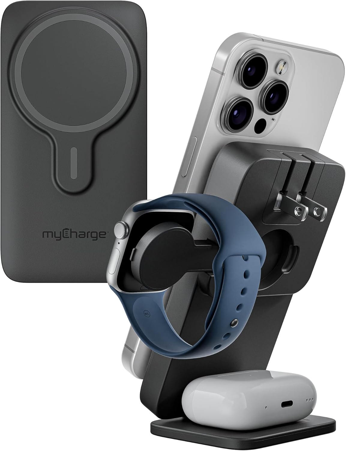 myCharge EcoHub 3 in 1 Apple Charging Station & Magsafe Battery Pack | Wireless Charger for iPhone, iWatch, AirPods | Magnetic Portable Charger with Wall Plug | Travel-Ready & Foldable
