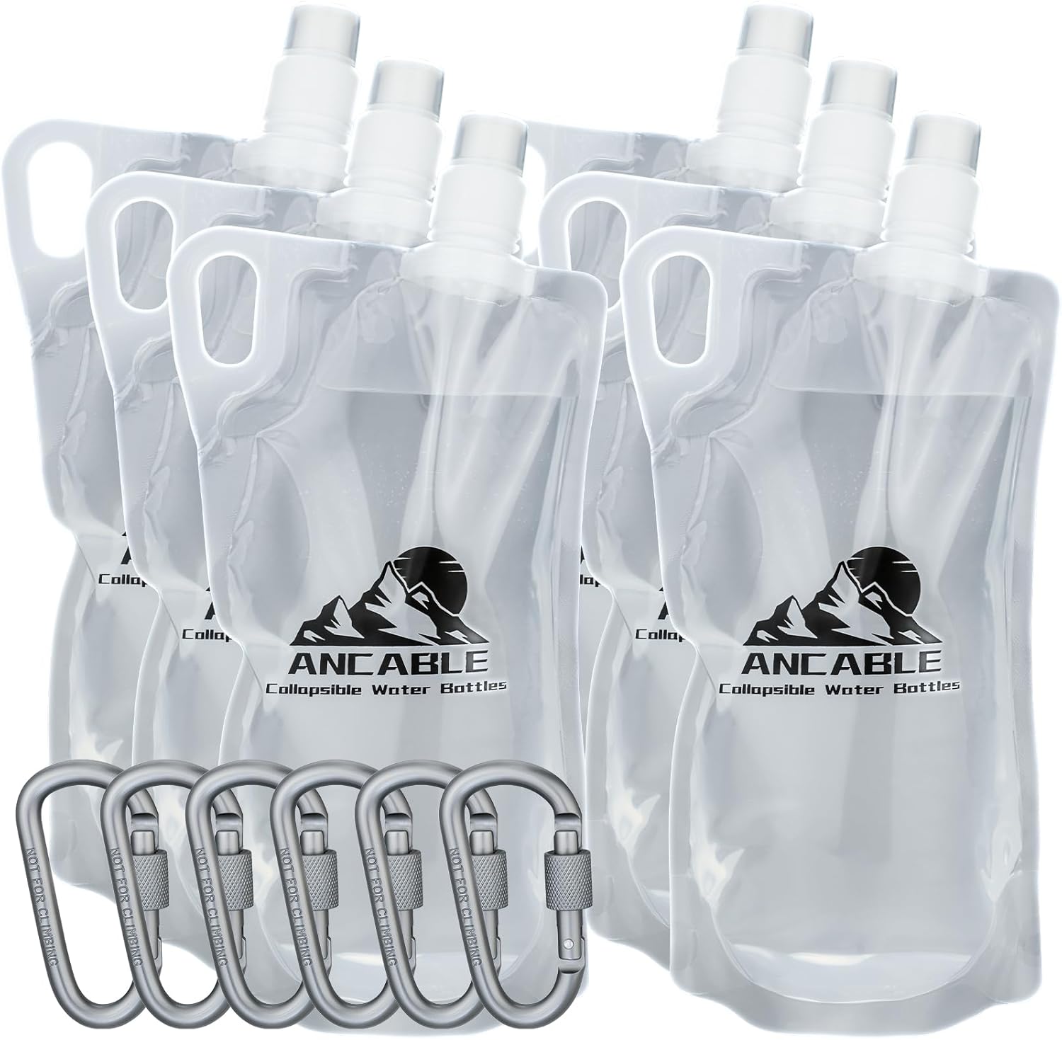 1L Hiking Collapsible Water Bottles, 6-Pack 33OZ BPA-Free Foldable Backpacking Water Bottle for Travel Camping Hiking