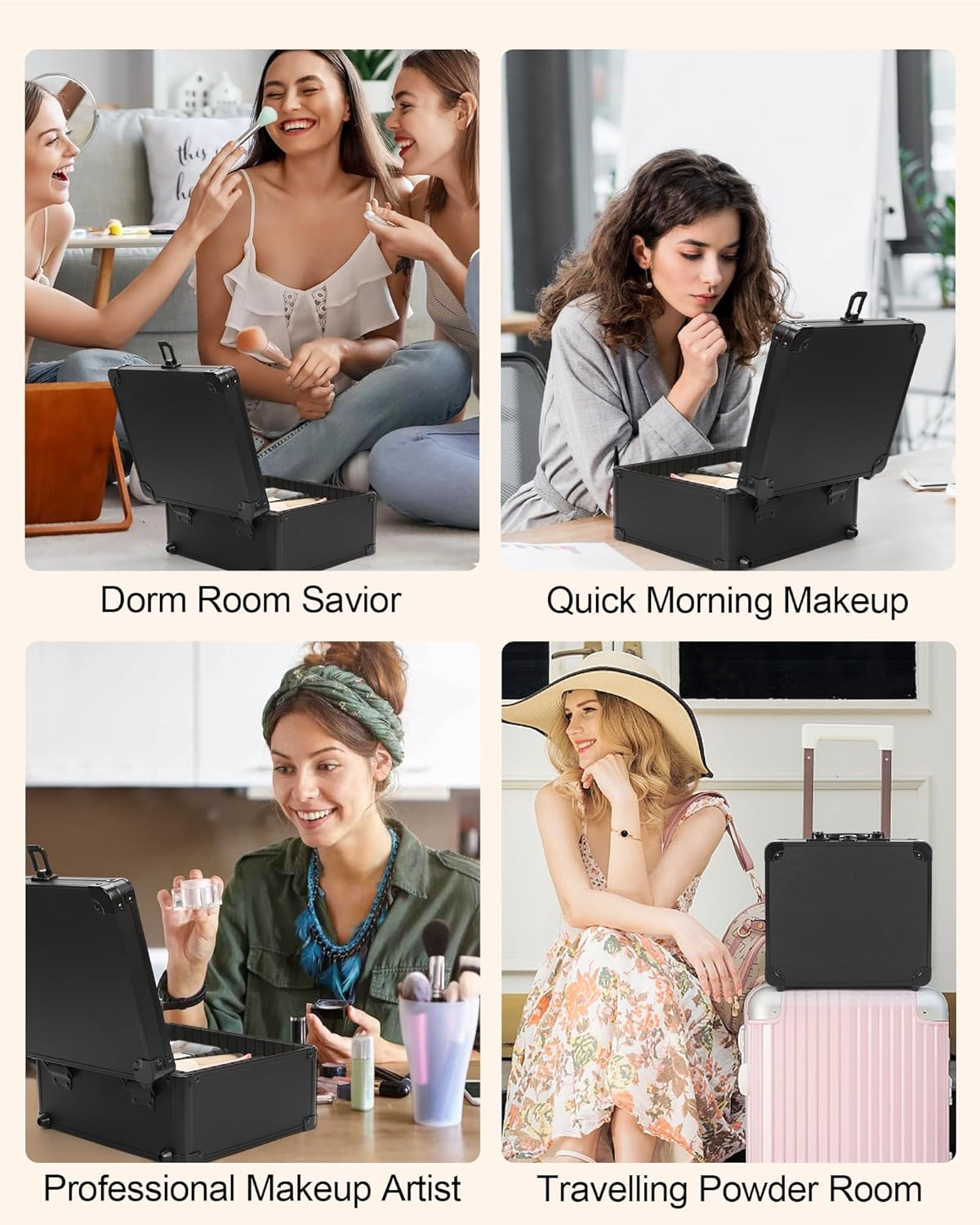 - 【Large Capacity】: Travel Makeup Case size:10.2*4.7*9in, Large storage capacity meets the daily travel needs of makeup enthusiasts and makeup artists, Inside the makeup brush board, easy to take out and use, adjustable partition design, Shock-resistant sponge pads protect cosmetics,easy to freely adjust the space in the bag
