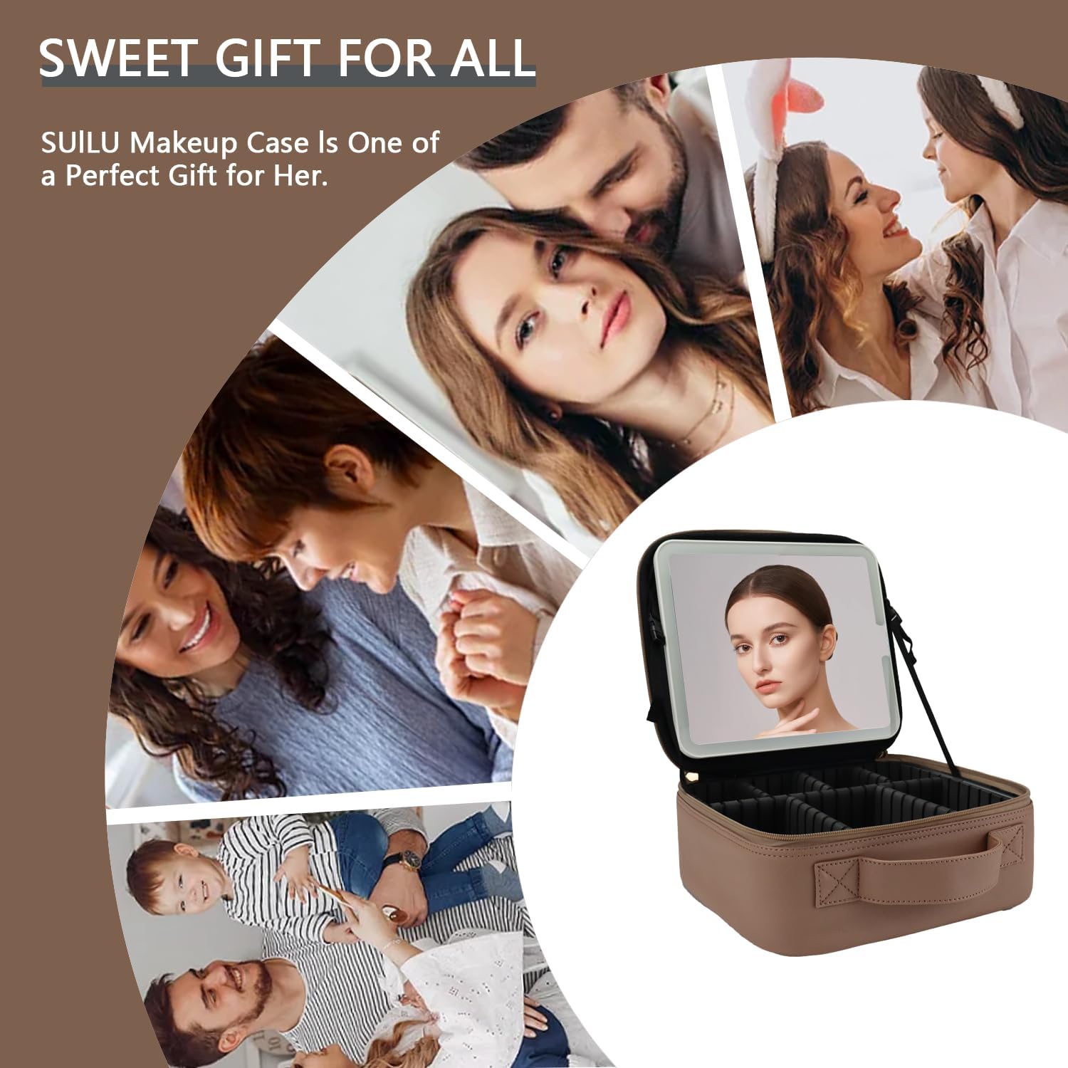 - 【ideal perfect gift】SUILU makeup bag with led mirror is the perfect gift for your wife, girl friend, mother, makeup lovers in any special days, such as mother's day, birthdays, valentine's day, halloween, anniversaries, christmas and more.it is not only storage your cosmetics, but also jewelry, electronic accessories, camera, essential oil, toiletries, shaving kit, valuable objects and so on.a must-have for your travels.