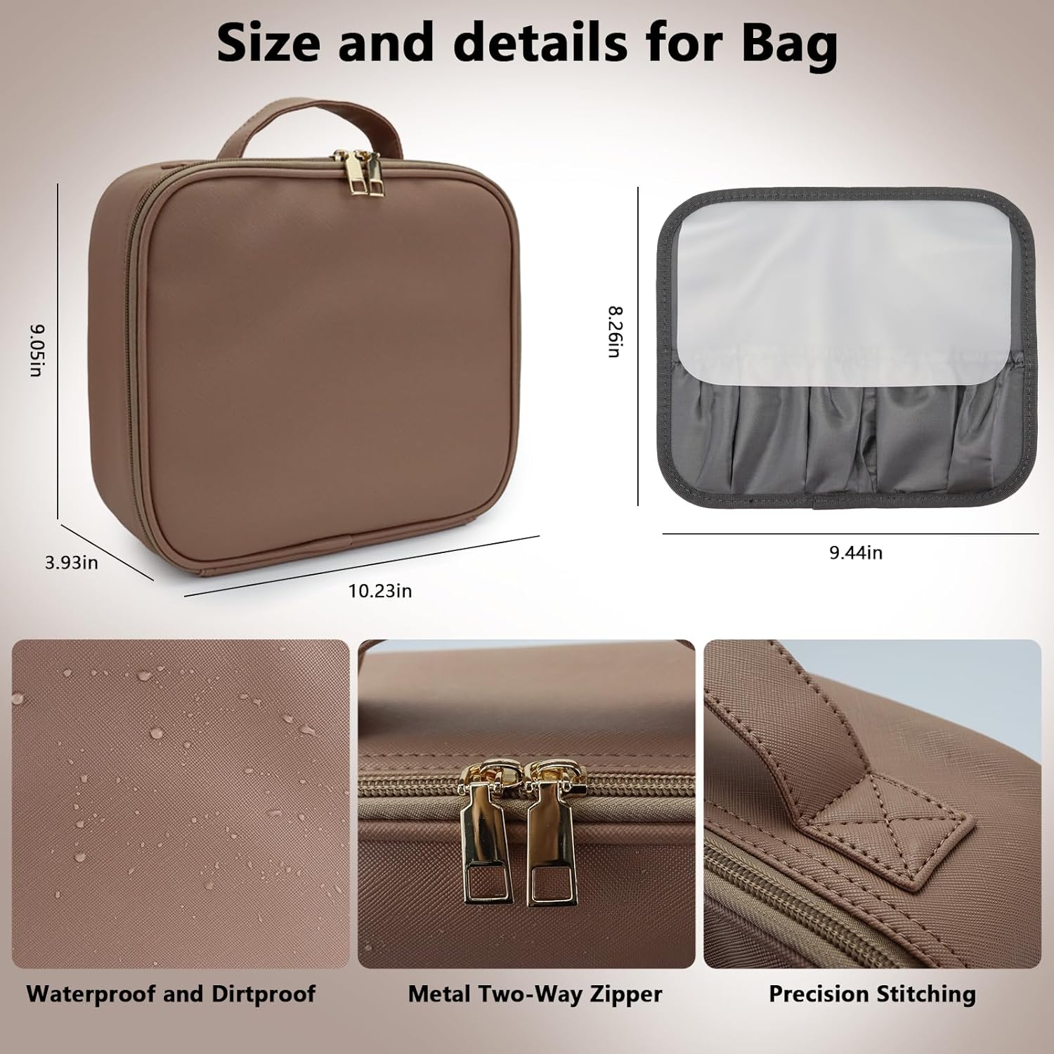 - 【Movable&Adjustable Dividers】The travel makeup bag is equipped with 6 different sizes of dividers, according to different cosmetics DIY different storage space, say goodbye to the messy travel makeup organizer, can well protect cosmetics from damage and leakage. Comes with a separate makeup brush storage bag to keep the travel makeup bag clean and dry.