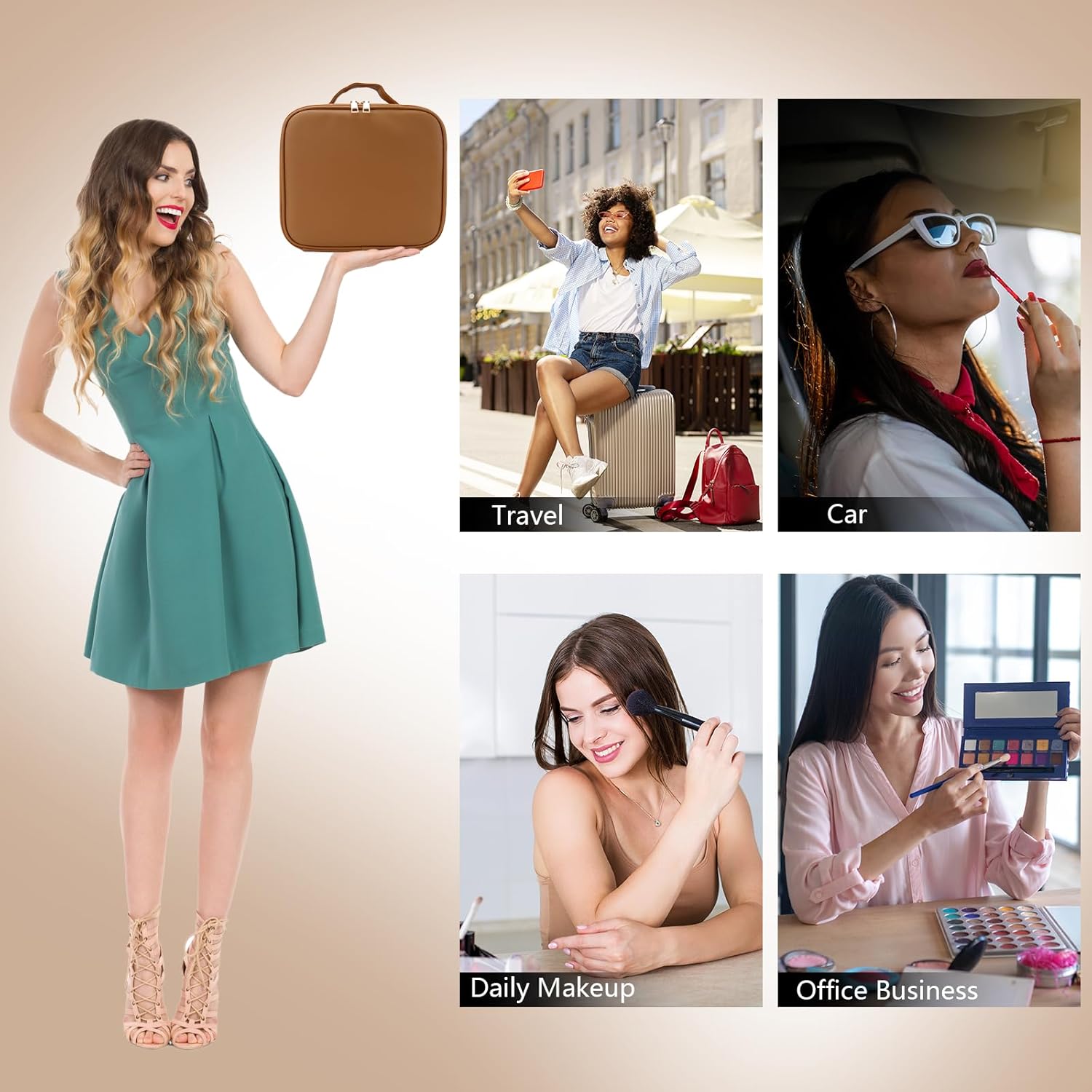 - 【Movable&Adjustable Dividers】The travel makeup bag is equipped with 6 different sizes of dividers, according to different cosmetics DIY different storage space, say goodbye to the messy travel makeup organizer, can well protect cosmetics from damage and leakage. Comes with a separate makeup brush storage bag to keep the travel makeup bag clean and dry.
