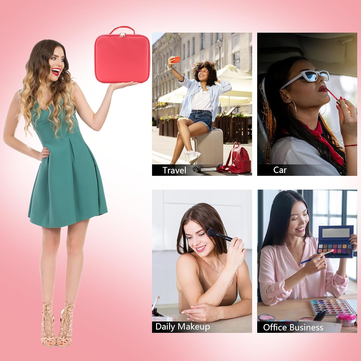 Travel Makeup Bag with LED Mirror Travel Makeup Organizer with 3 Lighted Settings, Adjustable Dividers and Makeup Brush Storage Bag Light Red