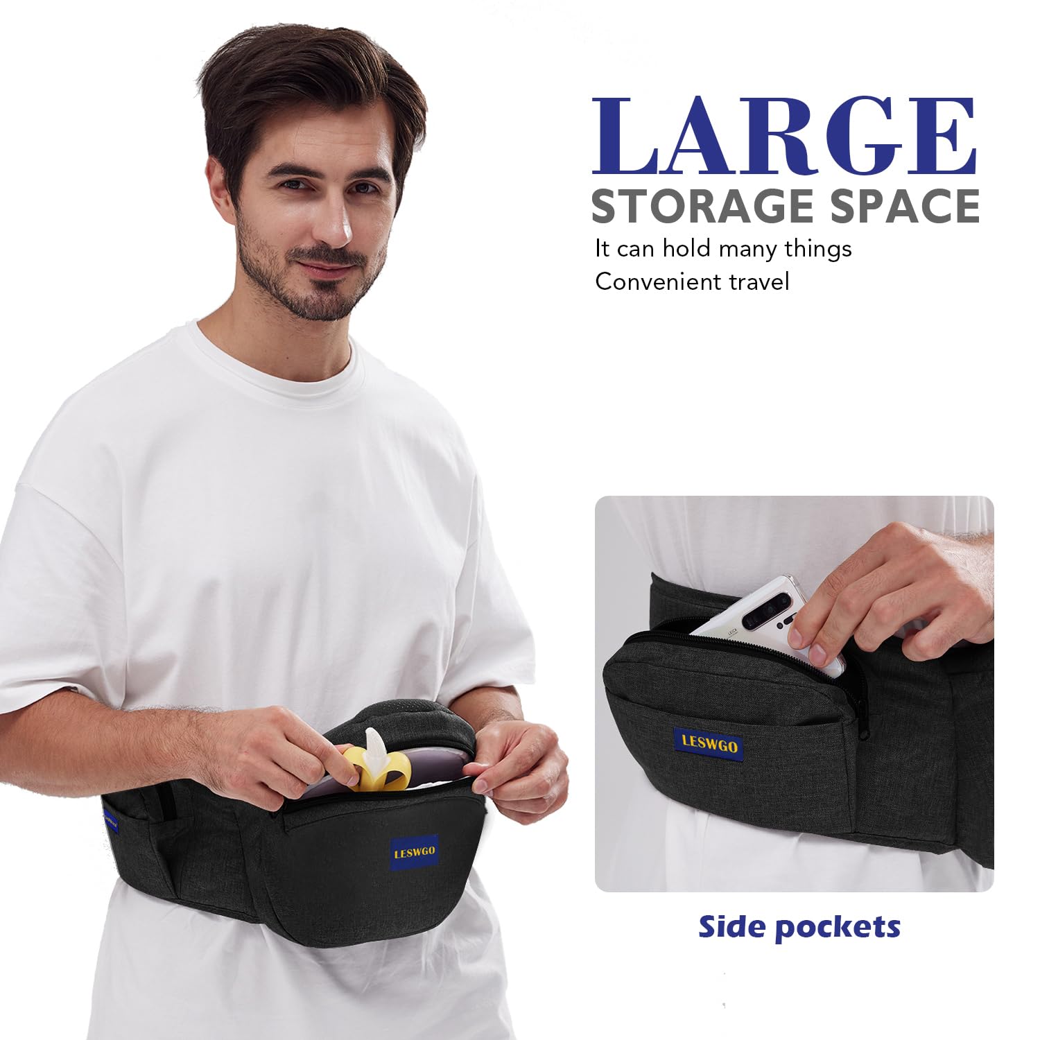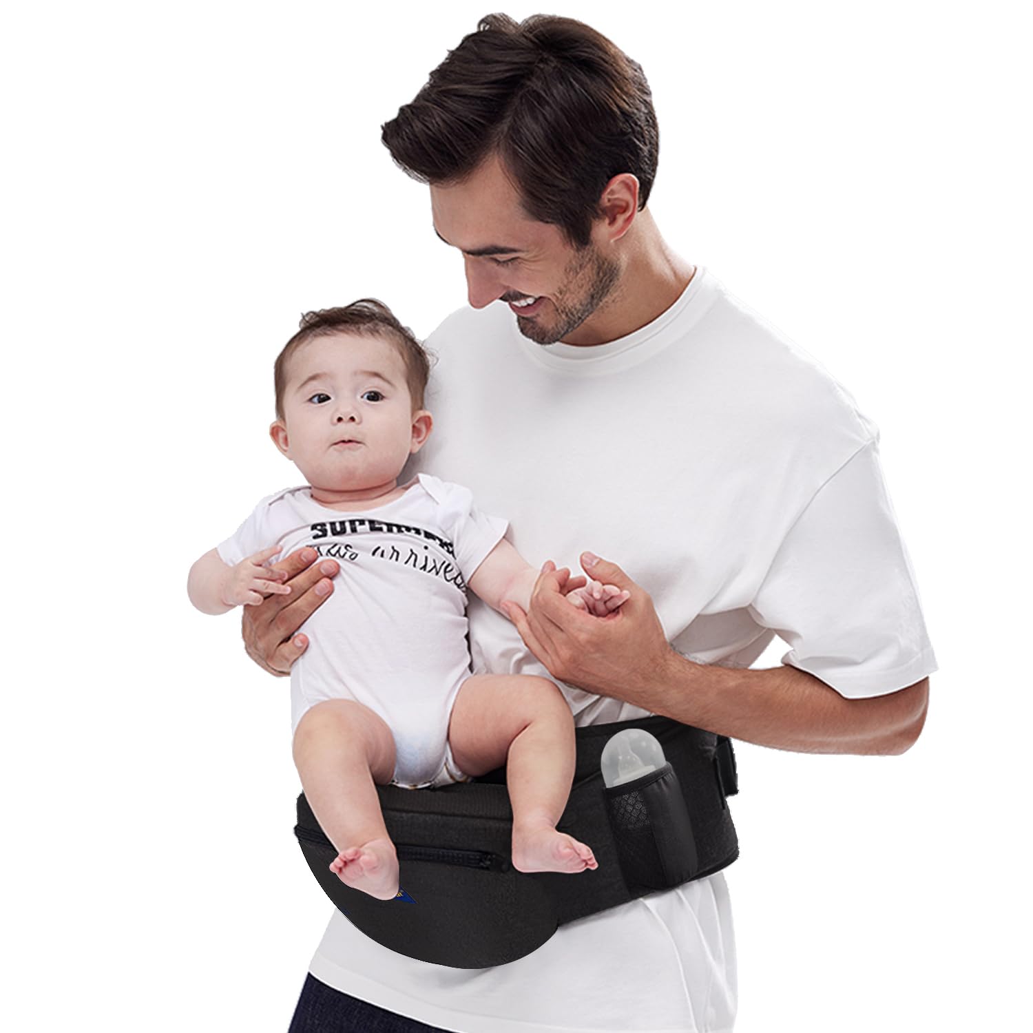 - 【Convenient Feature】: Baby hip seat has enough storage, includes two zippered storage pocket and a bottle pocket, perfect for carrying essentials like diapers, wipes, wallet, keys,or your phone.