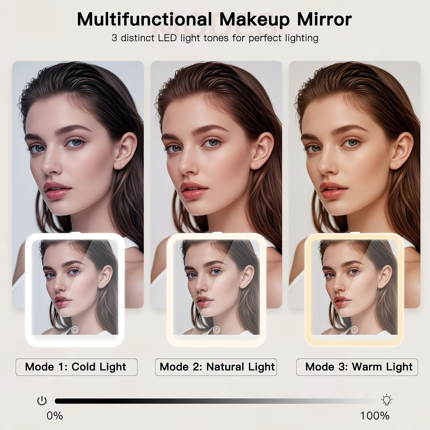 - 【LED Vanity Mirror】Travel light up cosmetic case has a detachable LED mirror with 3 color lights (cool, natural, warm), adjustable brightness, providing a wide range of lighting intensity to suit different scenarios and personal preferences; The led mirror features a hidden stand on the back, allowing it to be placed on a tabletop as a freestanding makeup mirror, USB rechargeable (2000mAh), ideal for dim or no power settings