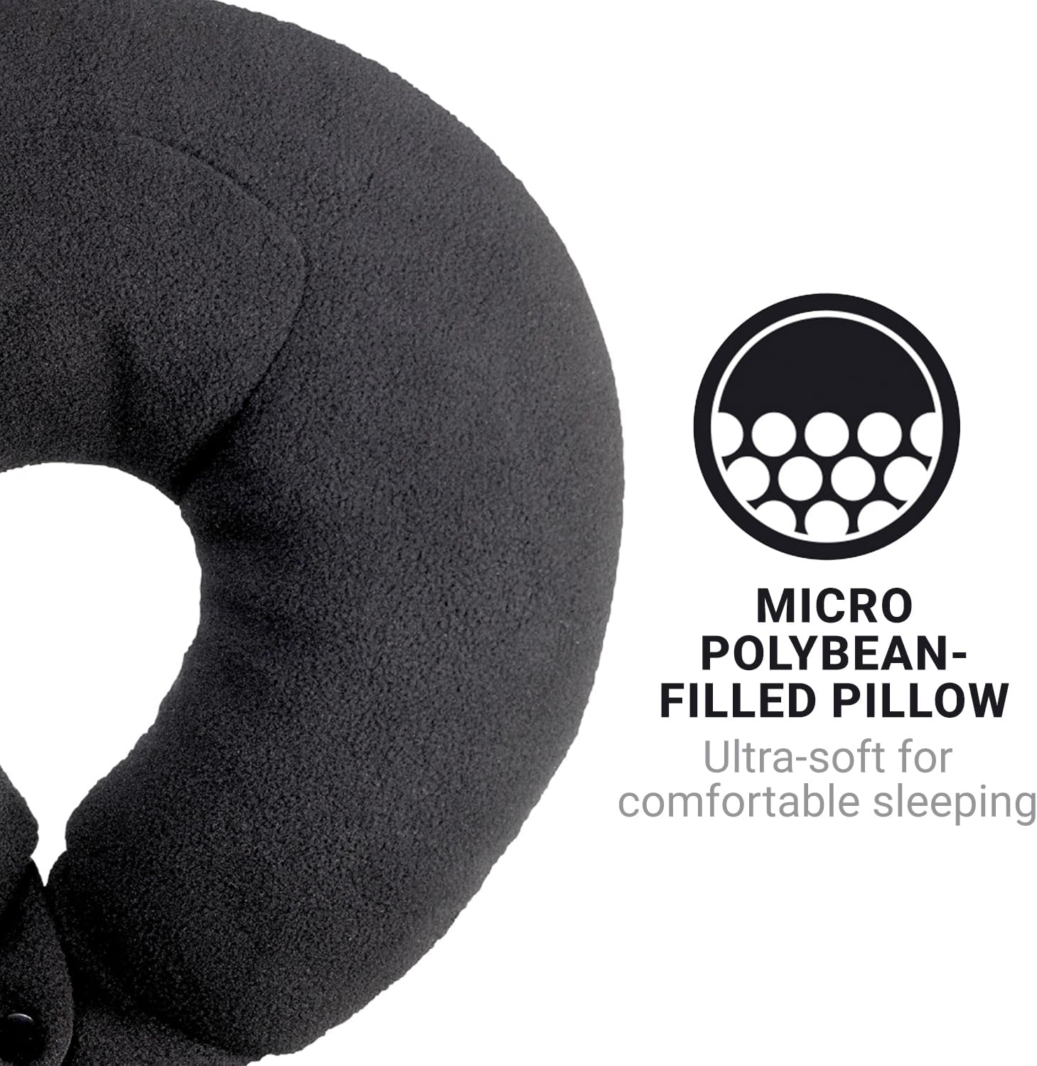 Classic Bean Sleeper, Comfortable Travel Pillow Filled with Micro Polybeans, Neck Pillow for Uninterrupted Sleep, Ideal for Airplane, Bus, Car, and Train, Travel Essentials, Black