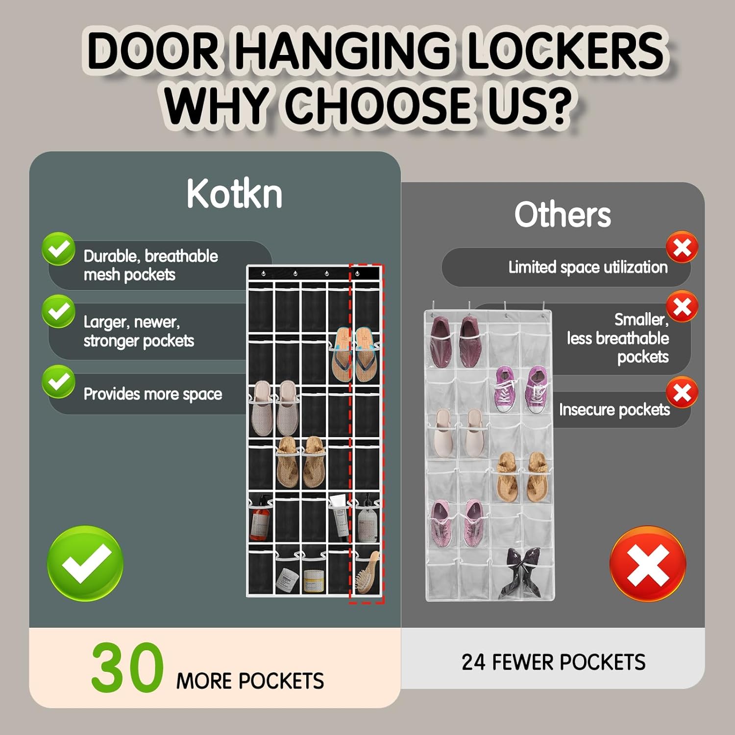 - 🥾【USE IN MULTIPLE SCENARIOS ACCORDING TO YOUR LOCATION】: This hanging shoe bag can be used not only in these places kitchen, baby room, bathroom, closet, foyer, bedroom, but also in pantry door, hall closet door, locker door, bi-fold door in your home, campsite, cruise ship, college dorms, classroom, traveling. Shoe rack includes 4 non-slip durable hooks, adjustable to fit doors 1.35"-1.95" thick, fits most doors perfectly.