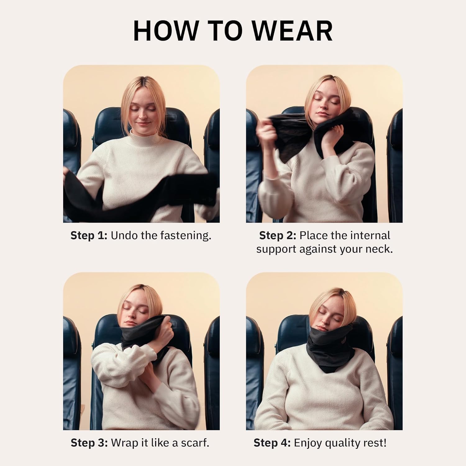 - Enjoy A Refreshing Traveling Experience: Our plane pillow's innovative mesh venting panel gives great breathability, while the Tencel cooling fiber keeps your neck sweat-free. For optimal support from your neck travel pillow, ensure the internal support is comfortably positioned against your neck—whether on your left, right, or under your chin— wrap the pillow around your neck and secure it into place. Be sure to remove the protective layer of fabric covering the velcro prior to use.