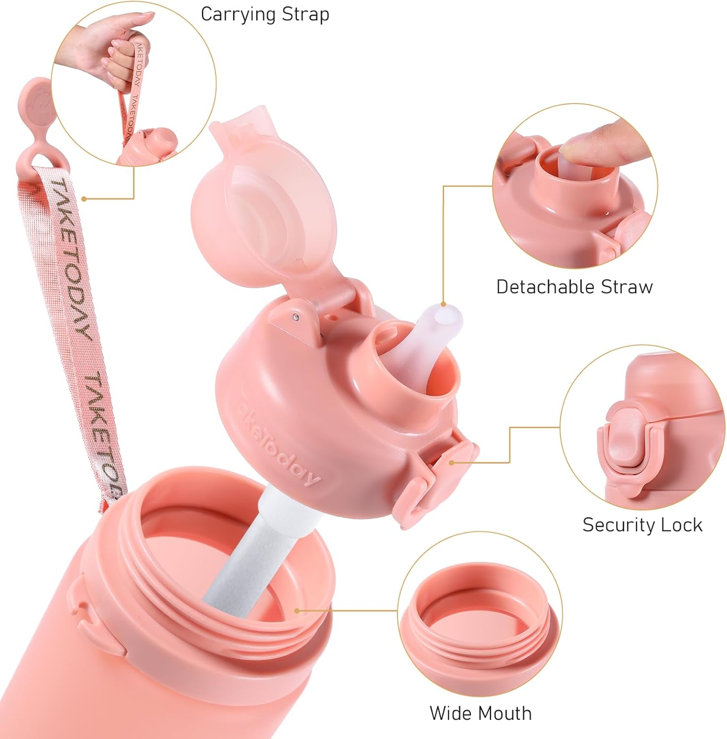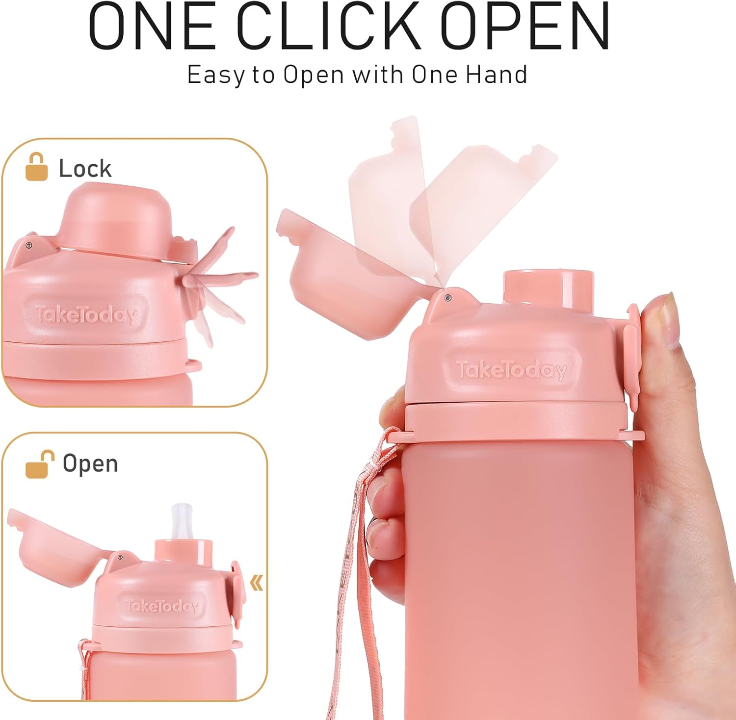 TakeToday Collapsible Water Bottles 20oz, Leak Proof, BPA-Free, Foldable Silicone Travel Water Bottle with Straw Strap for Cycling, Hiking, Outdoors