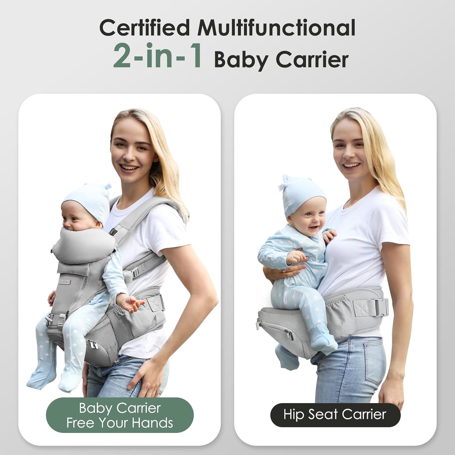 - 6-IN-1 VERSATILE DESIGN:Our premium baby carrier with hip seat grows with your little one from newborn to toddler (0-36 months)! The convertible baby backpack carrier features detachable straps + adjustable hipseat offering 6 carrying positions - perfect for feeding, travel, or daily errands while keeping hands free.