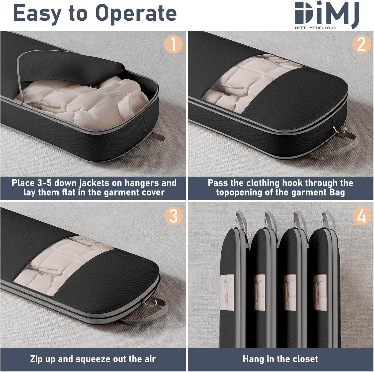 - 【Premium Expandable Garment Bag】: Our ultra-space-saving compression clothing storage bags features a unique dual-layer zipper design that requires no vacuum pump—yet delivers more capacity and flexibility than standard options. Adjust between 4" and 5.9" thickness to store seasonal clothing like coats, suits, dresses, T-shirts, and even fur coats with ease