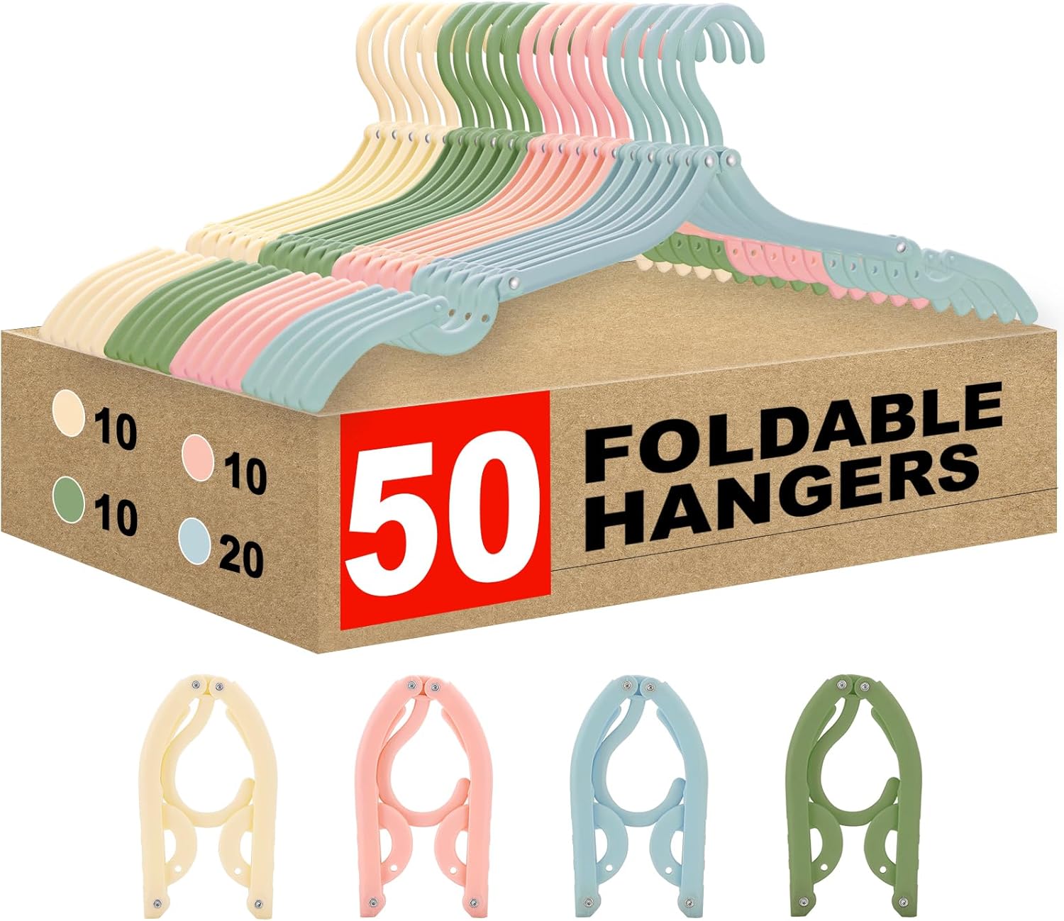 Foldable Travel Hangers,50Pcs Portable Clothes Hangers for Cruise, Suitcases, Closets | Lightweight Plastic Hanger Set for Hotels, Business Trips, Vacation (Pink/Beige/Green/Blue)