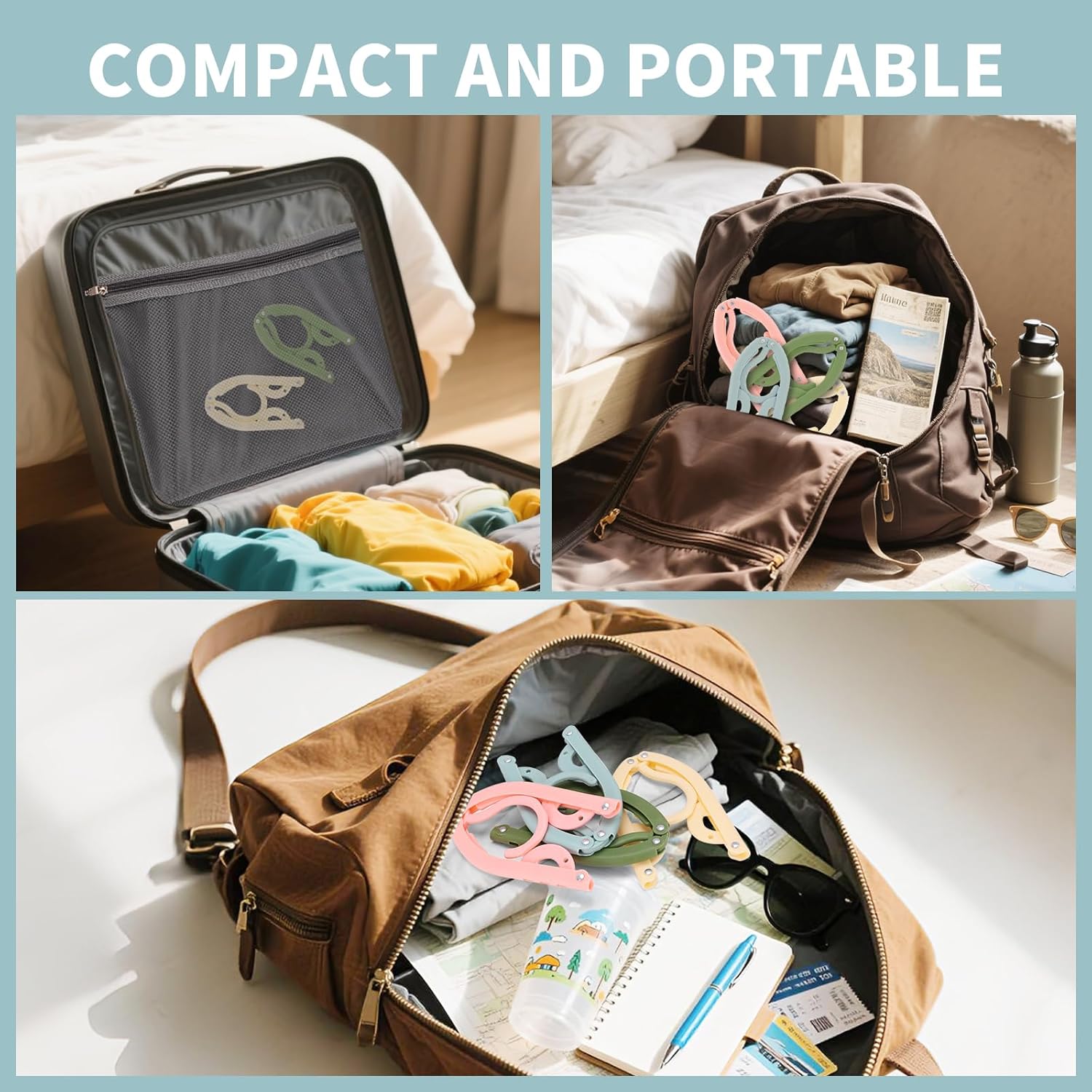 - SUITABLE FOR TRAVEL: Each travel hanger weighs only 28g, and its size is 5.12 * 2.75 inches when fully folded. With light weight and small size, it can be easily placed in suitcases, duffel bags, and backpacks