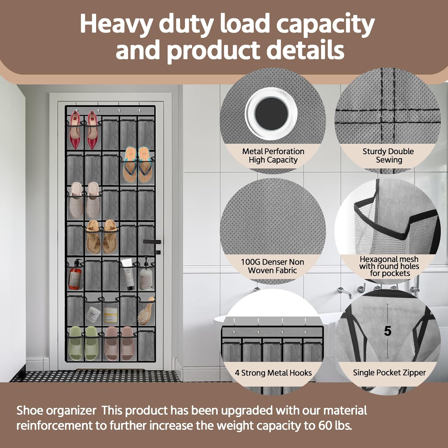 - 🍁✔️【MULTI-SITUATION USE AND FITS MOST DOORS】This hanging shoe bag can not only be installed in halls, bathrooms, nurseries, foyers, closets, bedrooms, but also in closet doors, pantry doors, locker doors, bi-fold doors in your home, cruise ships, campgrounds, college dormitories, classrooms, travels, etc., according to your needs to be installed in different places. The shoe rack comes with 4 non-slip and durable hooks that are adjustable according to the thickness of the door, suitable for doors with a thickness of 1.37“-1.65”, fits perfectly with most doors.