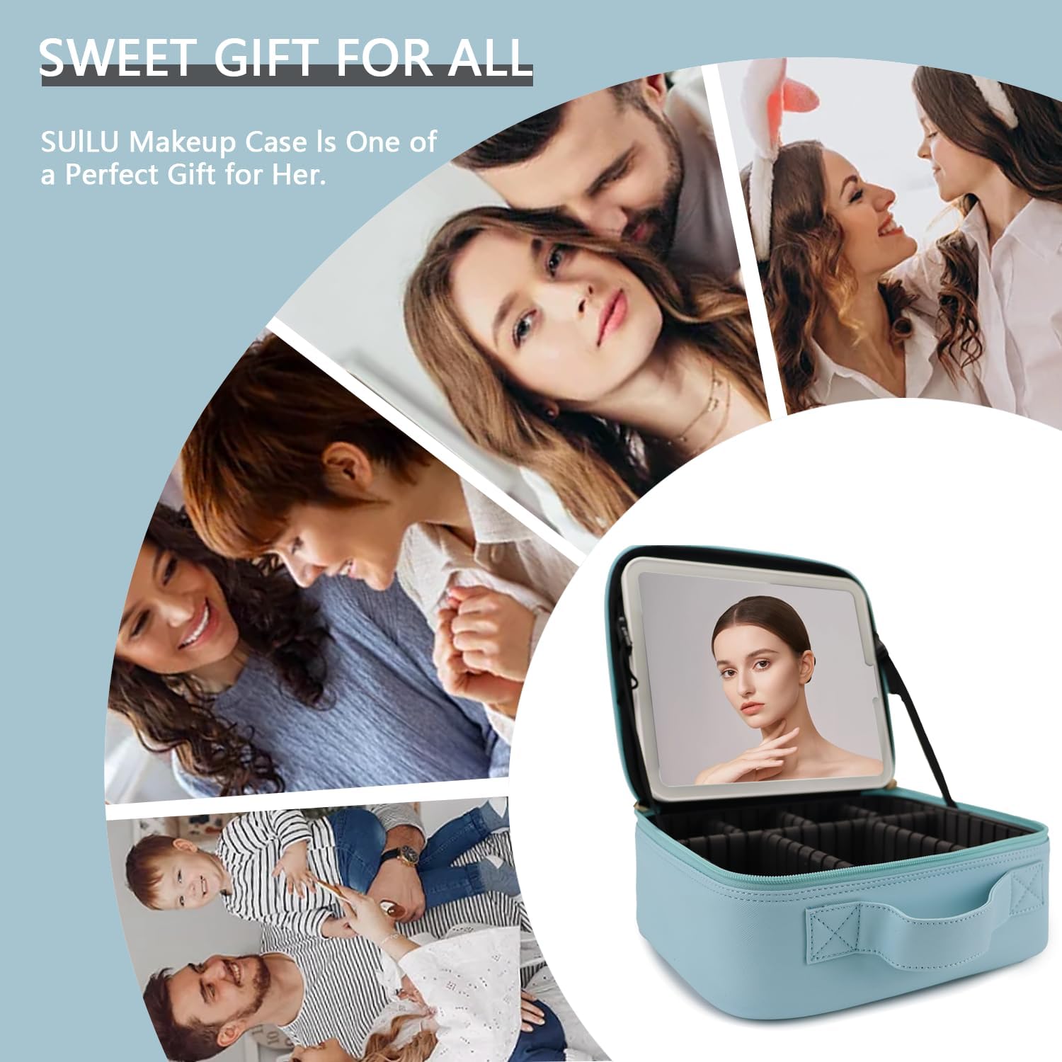 - 【ideal perfect gift】SUILU makeup bag with led mirror is the perfect gift for your wife, girl friend, mother, makeup lovers in any special days, such as mother's day, birthdays, valentine's day, halloween, anniversaries, christmas and more.it is not only storage your cosmetics, but also jewelry, electronic accessories, camera, essential oil, toiletries, shaving kit, valuable objects and so on.a must-have for your travels.